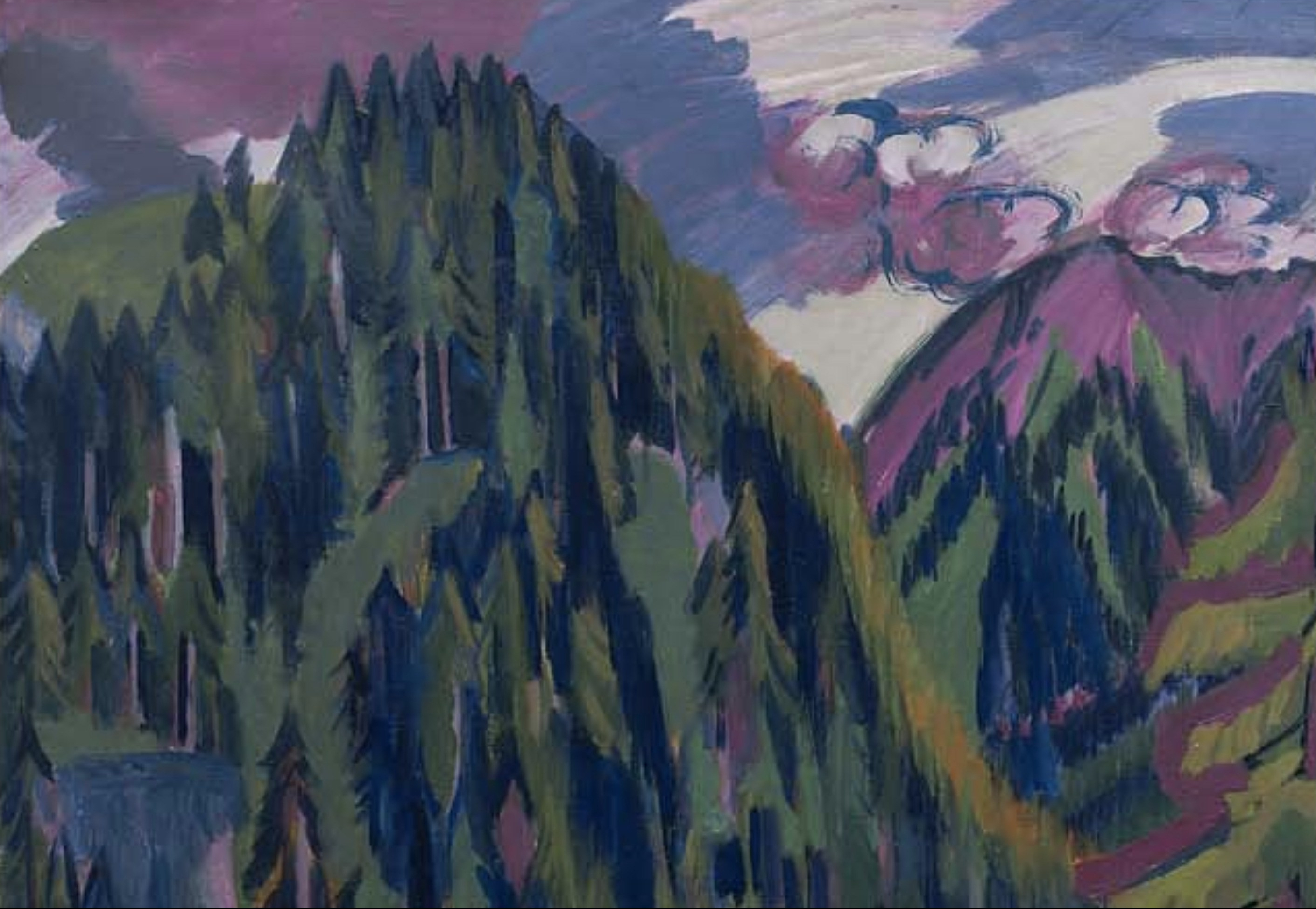 “Here in rural Graubünden, he couldn’t help but lead a healthier life. This dramatic change of scene was reflected in his art. His emotive use of colour was as revolutionary as ever, but painting landscapes instead of cityscapes meant that the effect was entirely different. His Berlin paintings had been dark and pessimistic. His Swiss pastorals were full of light and hope.”(1)