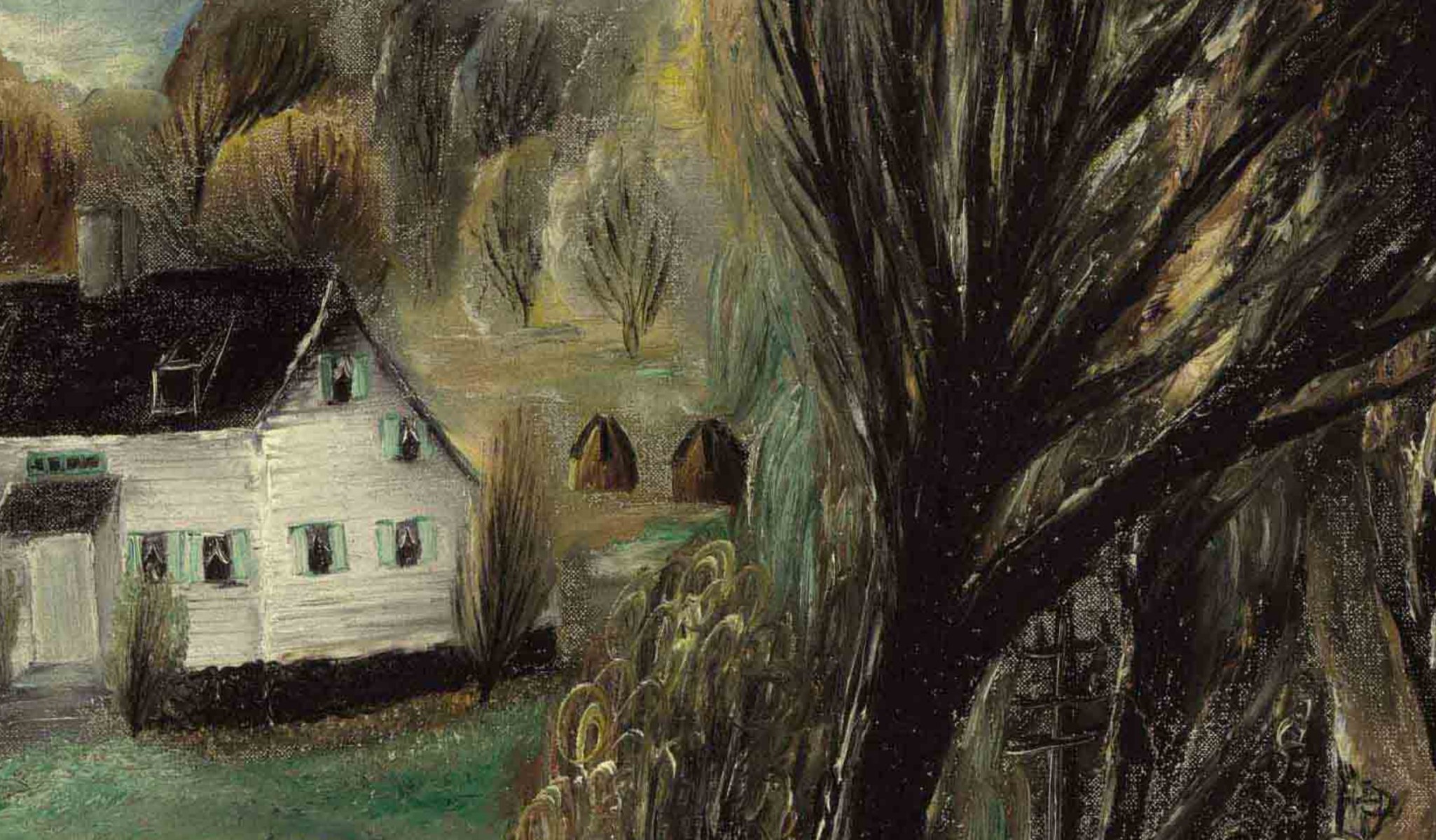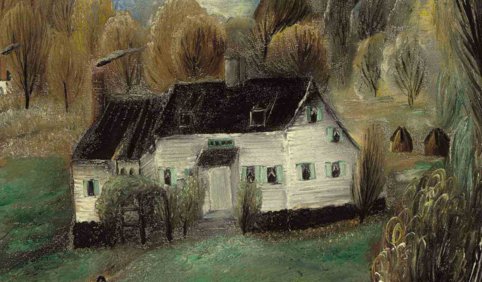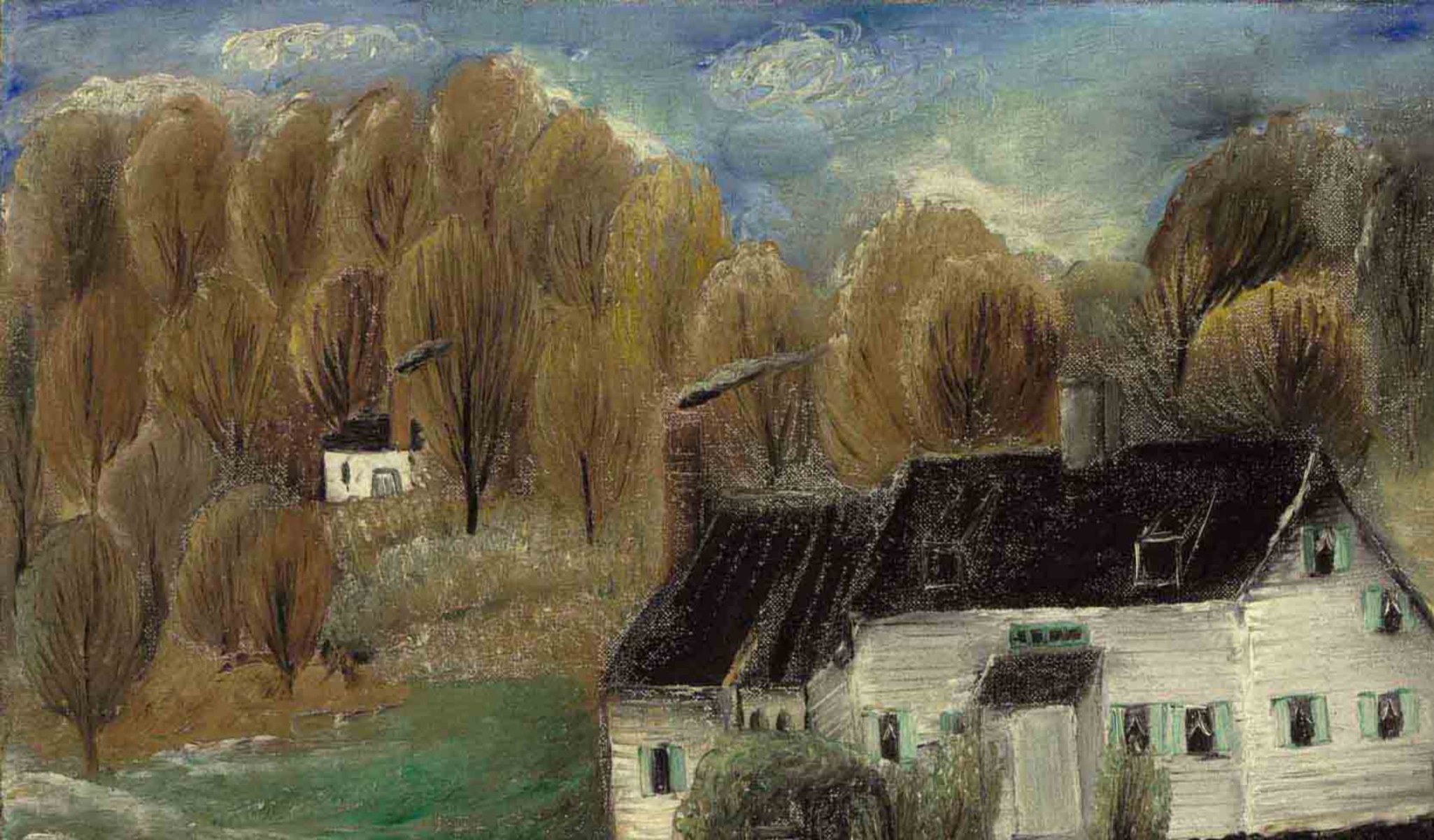 According to Christie’s, in 1928 Reuven Rubin visited Adolph Stone, a Romanian friend who had a country home in Peekskill, New York. Rubin produced this painting of that home.