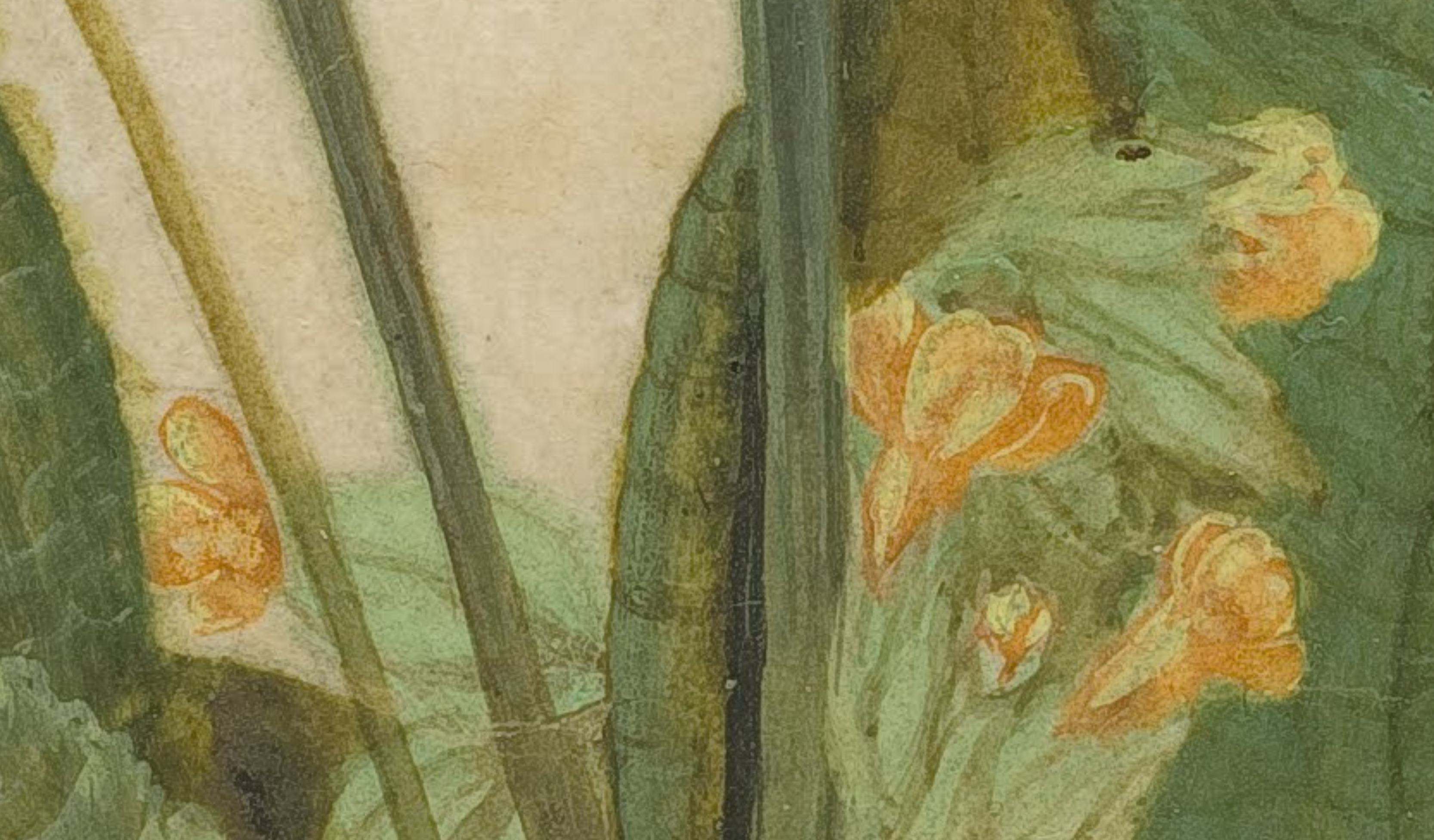 In studying this image, I am impressed with the rich color and fine detail. Unfortunately, I do not understand what gouache actually is, so today’s post will take a brief detour to answer that question.