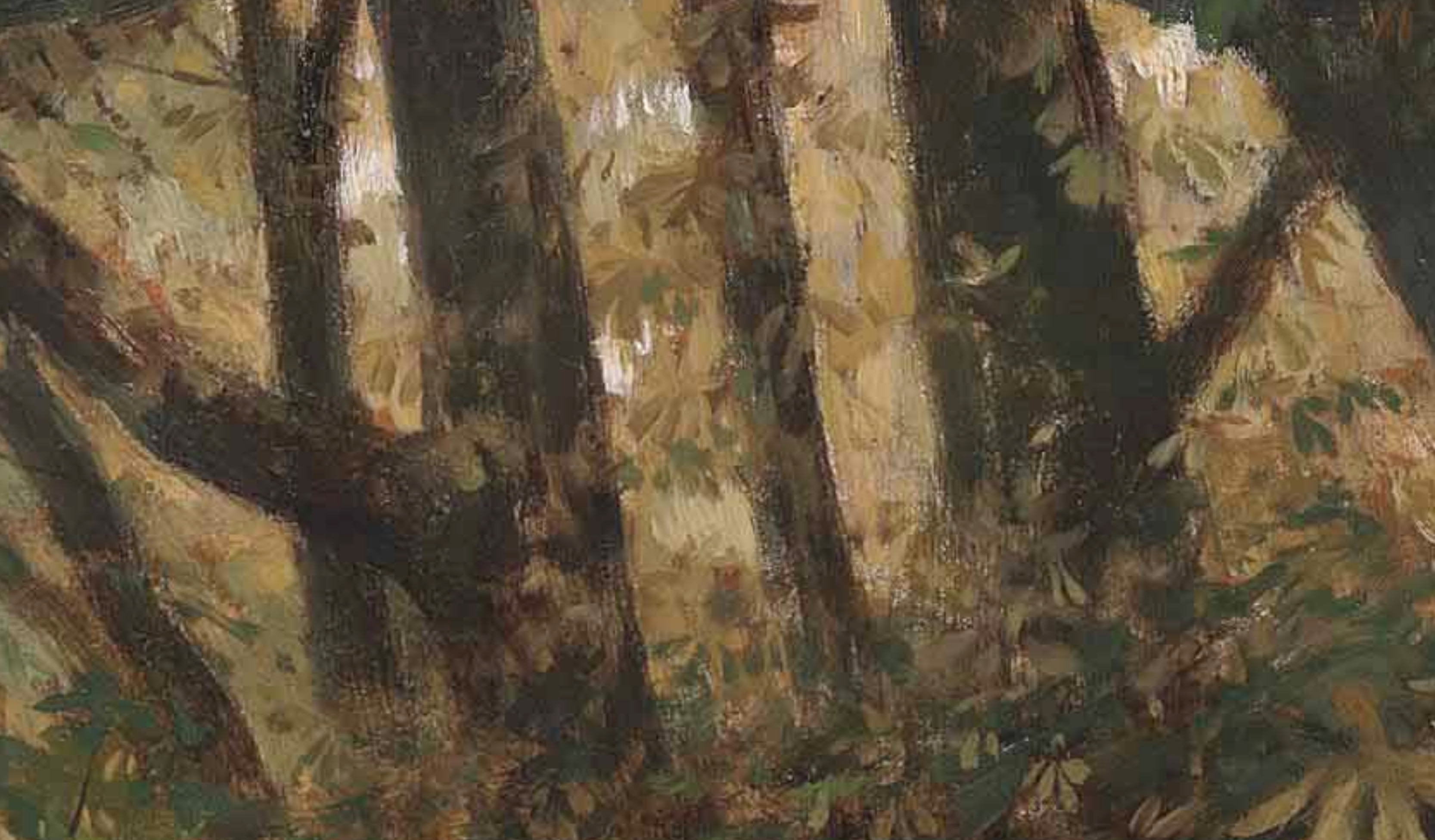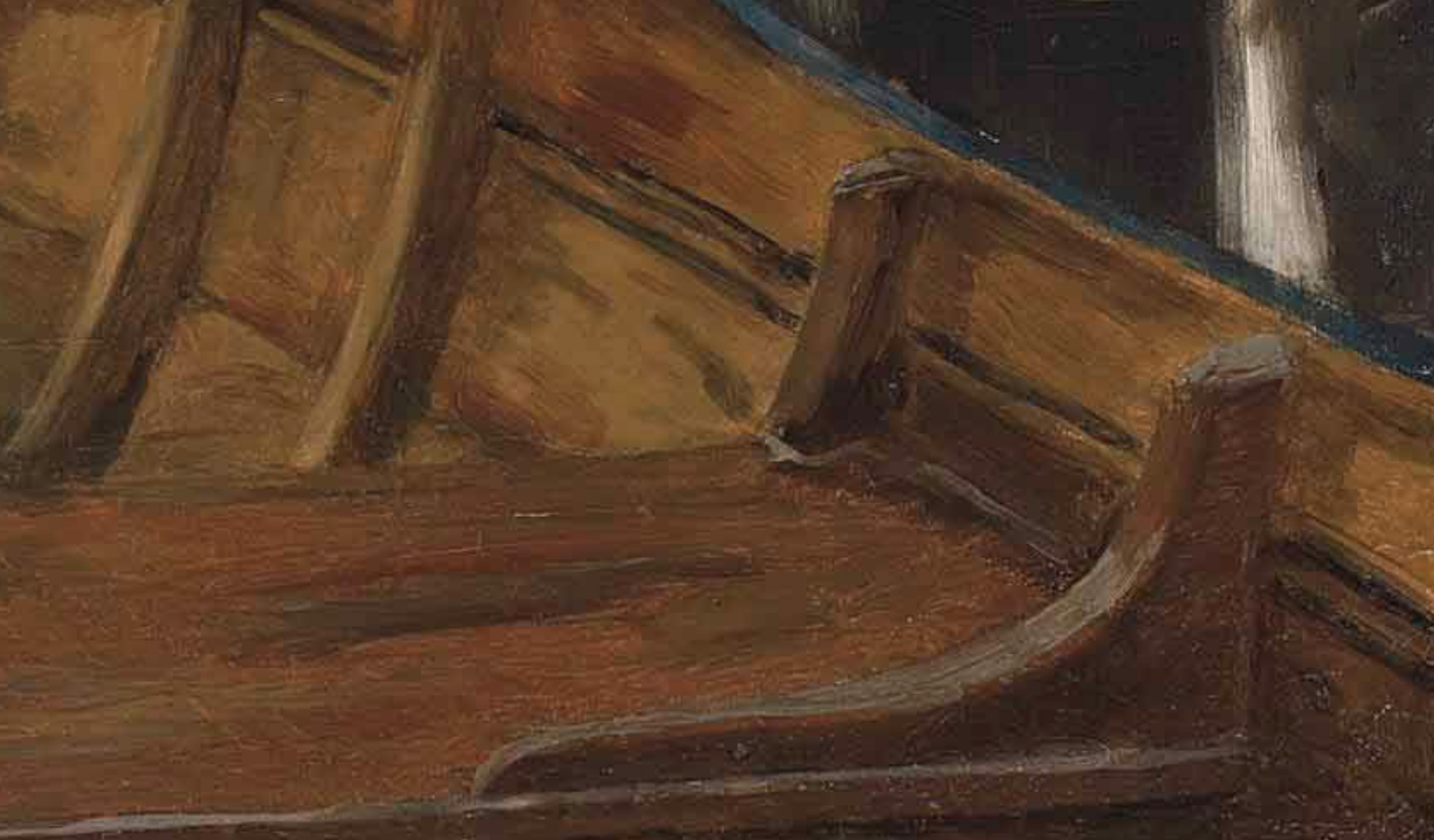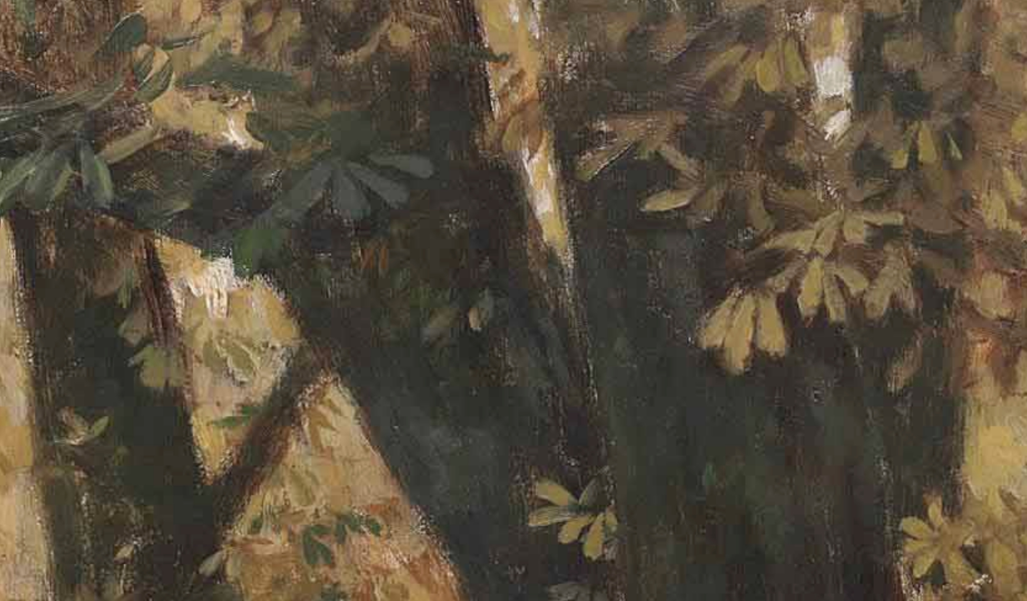 “‘Waiting’…demonstrates Tissot’s supreme skill as a painter in oils. The deft strokes and subtle colours of autumn leaves against shimmering water and filtered sunlight vie with Impressionist paintings, and the patch of water on the right, with reflected trees and floating leaves, is a painterly tour-de-force…Tissot is thought of principally as a painter of detail; his ability to convey costume and boating minutiae can mislead people into thinking he paints meticulously with a tiny brush, whereas in reality he paints with rapid, fluent, and often broad, touches. Angled lines of blacks and greys capture the pleats of the young woman’s skirt below her cream tunic, which is edged with matching flower-patterned lace that is painted in assured quick dabs, contrasting with the tunic’s undulating and jagged strokes. The single right glove is astounding: few painters could create such a believable rendition of fine leather empty of fingers and palm. READ FULL ESSAY: Christie’s