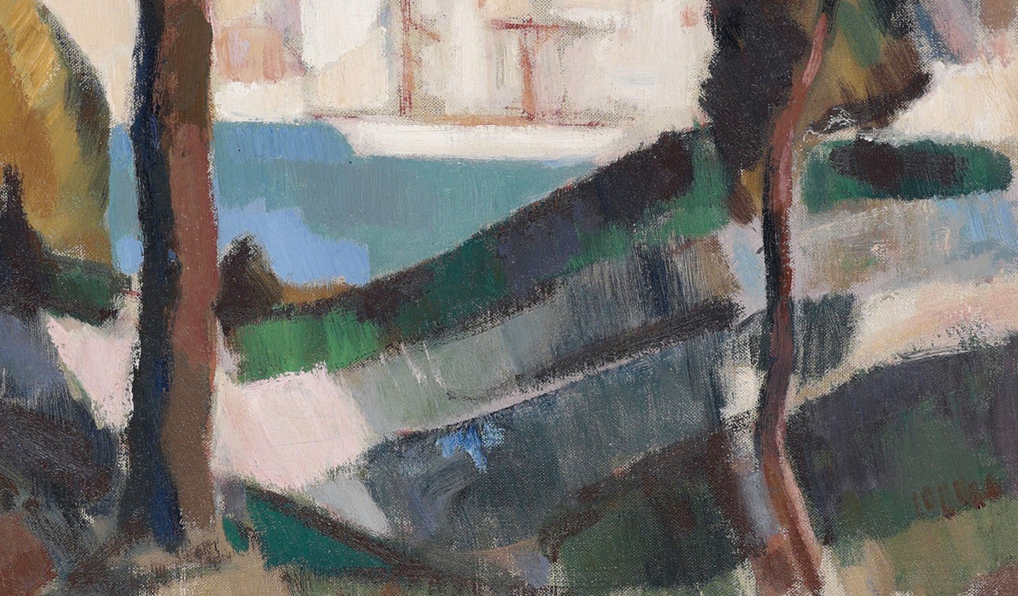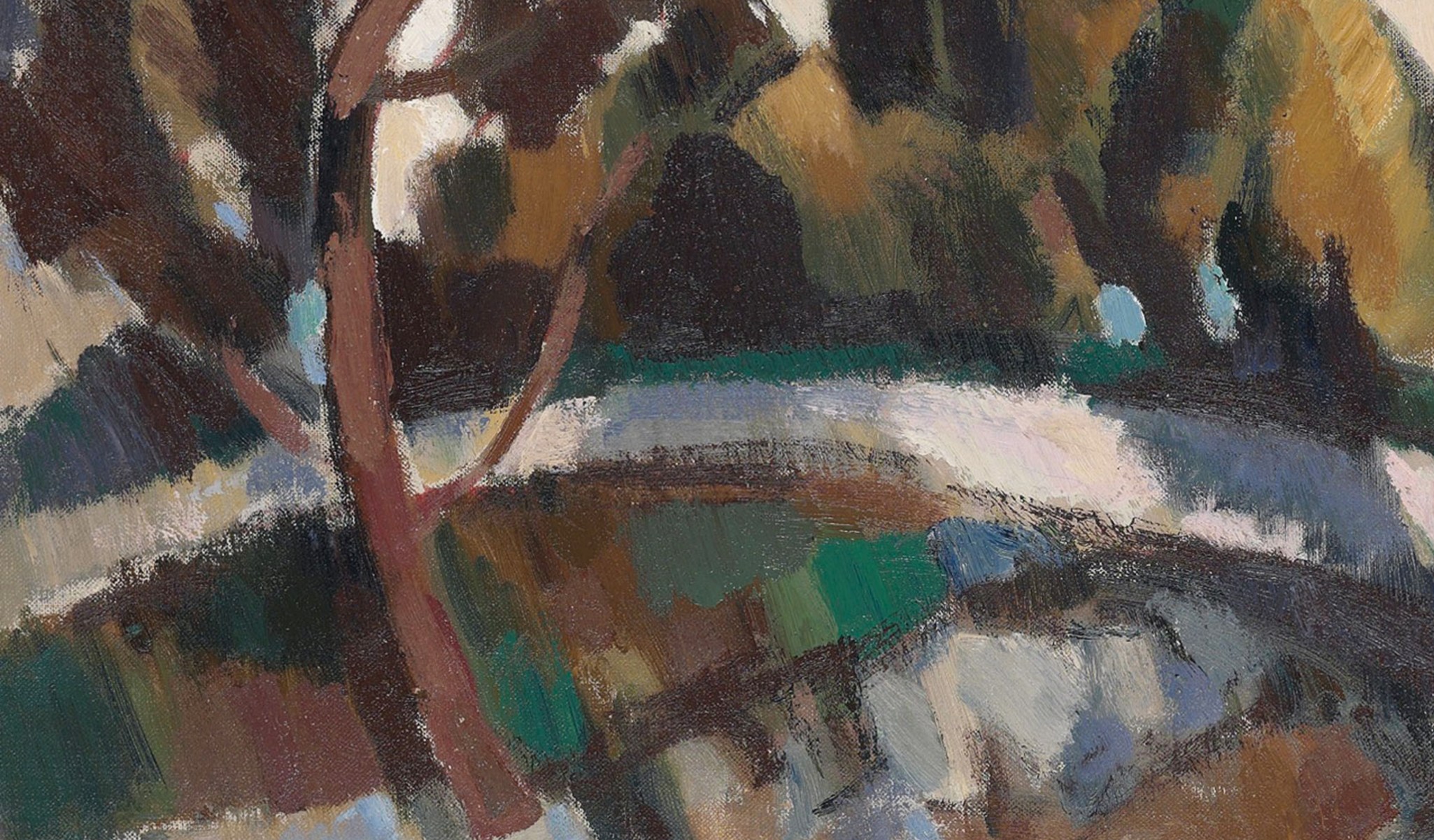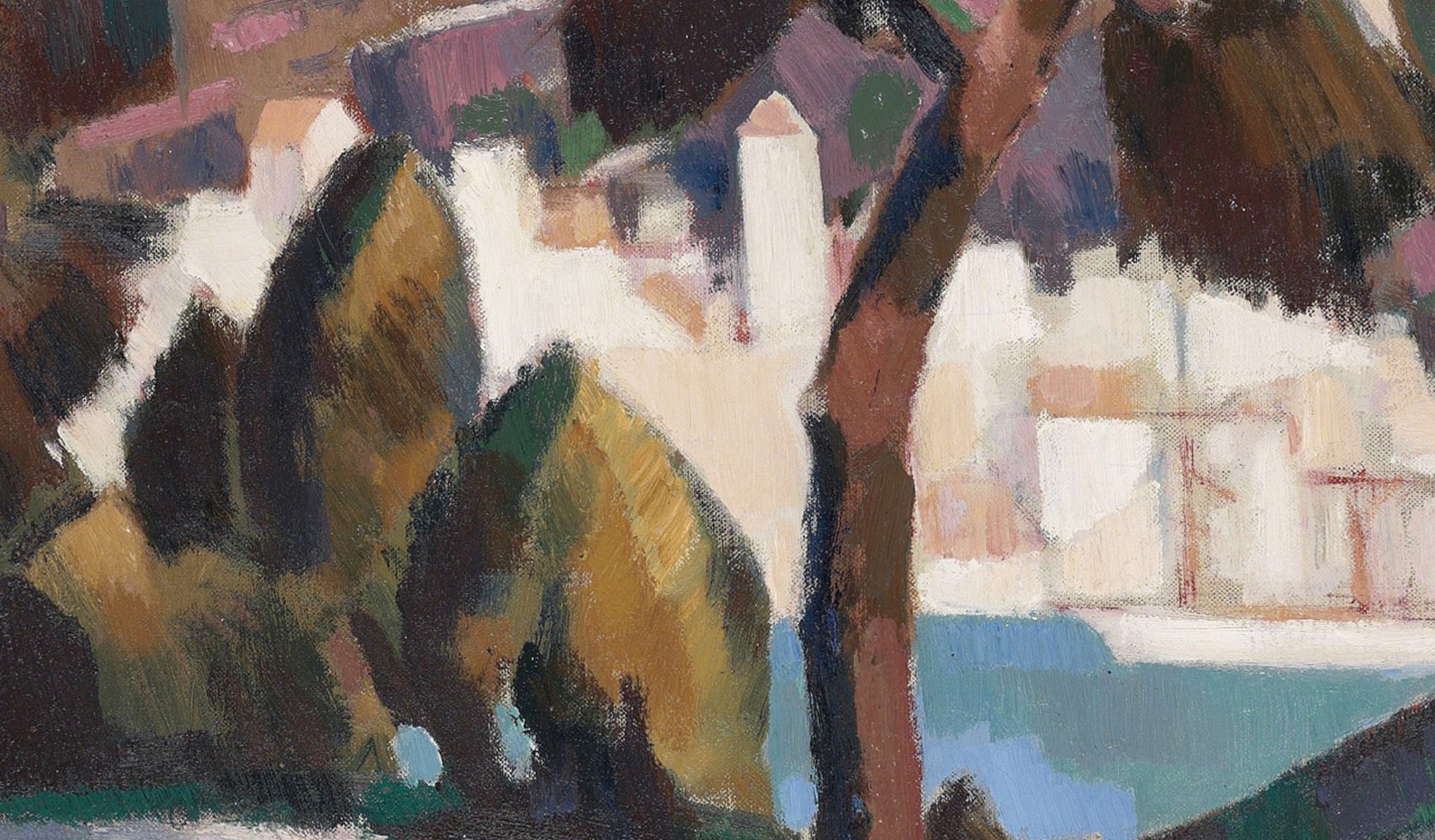 The style clearly hints at certain Cubist features, and shows the influences of Cézanne in Fergusson’s use of colour, composition and brushstrokes