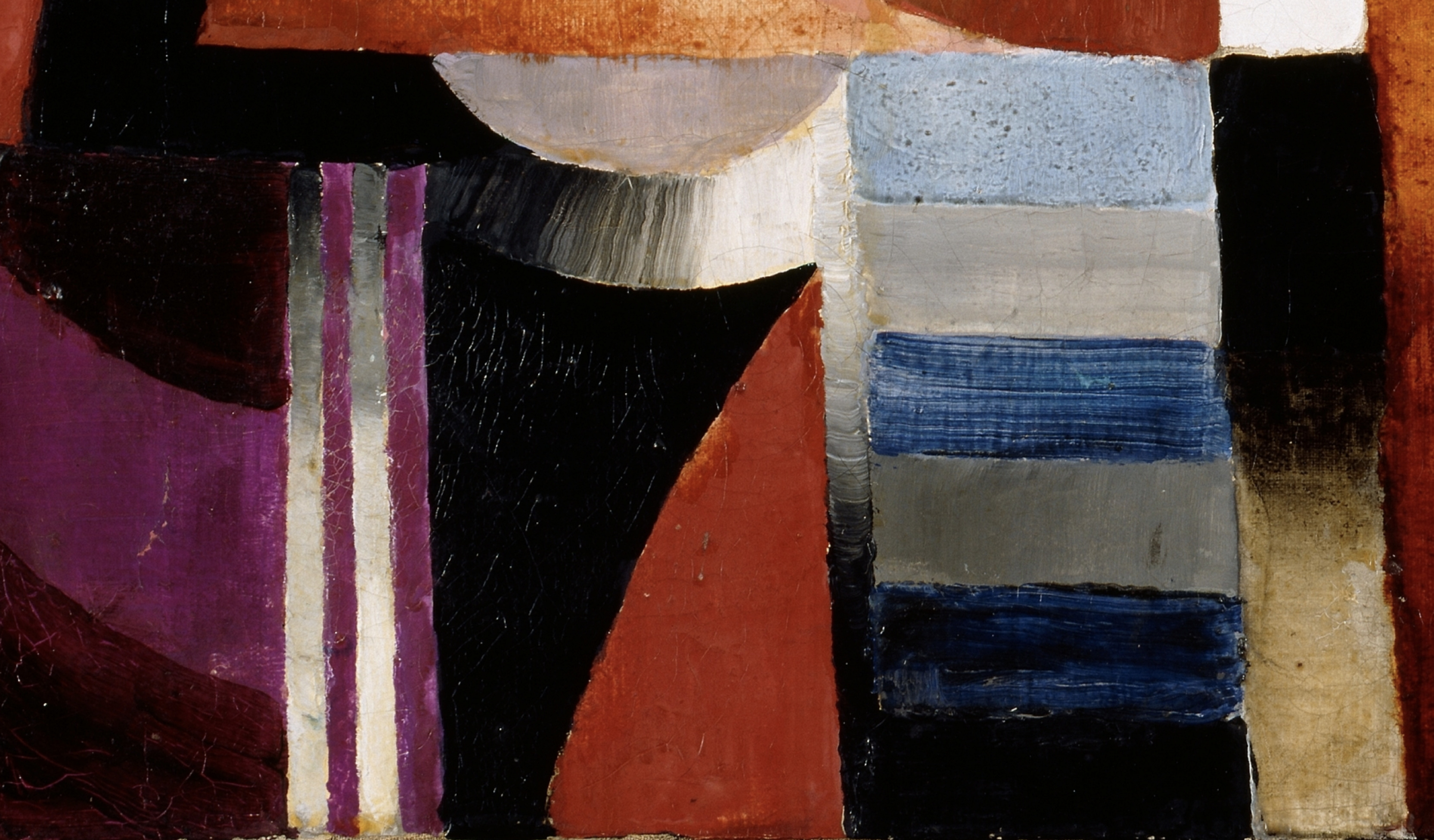 Although we do not know why Thorvald Hellesen chose to depict a balalaika in this painting, musical instruments in general were a frequent motif in cubist paintings. The balalaika has its origins in Russian folk music and is often used to articulate a quick, repetitive rhythm, and both musicality and rhythm typify Hellesen’s painting.
