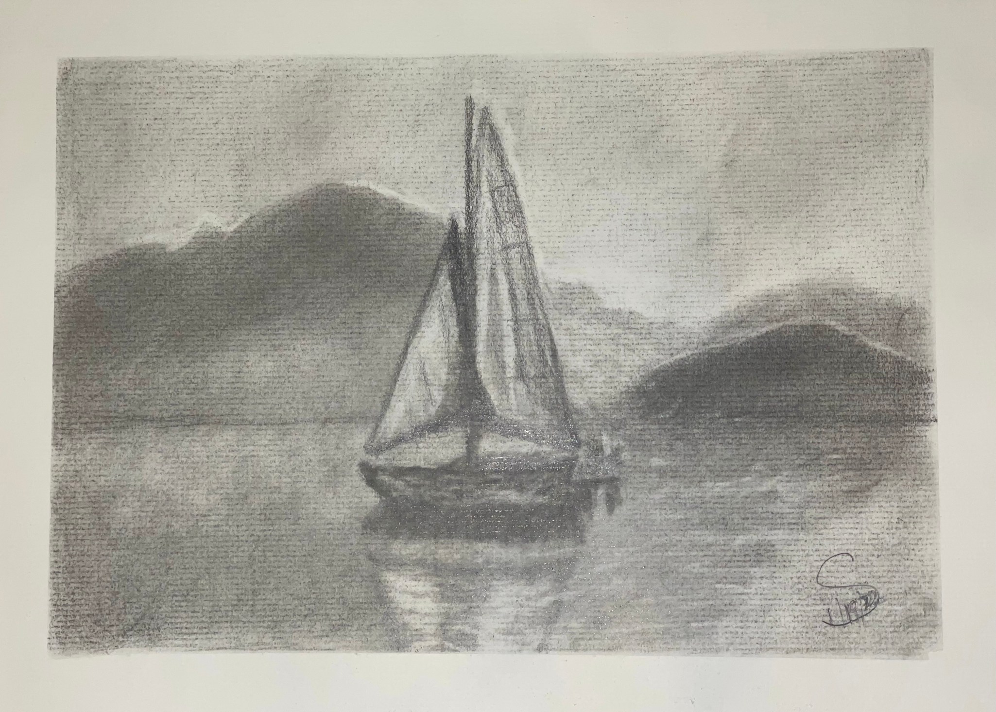 Sailboat, by Sunnyside, graphite on paper, January 19, 2022