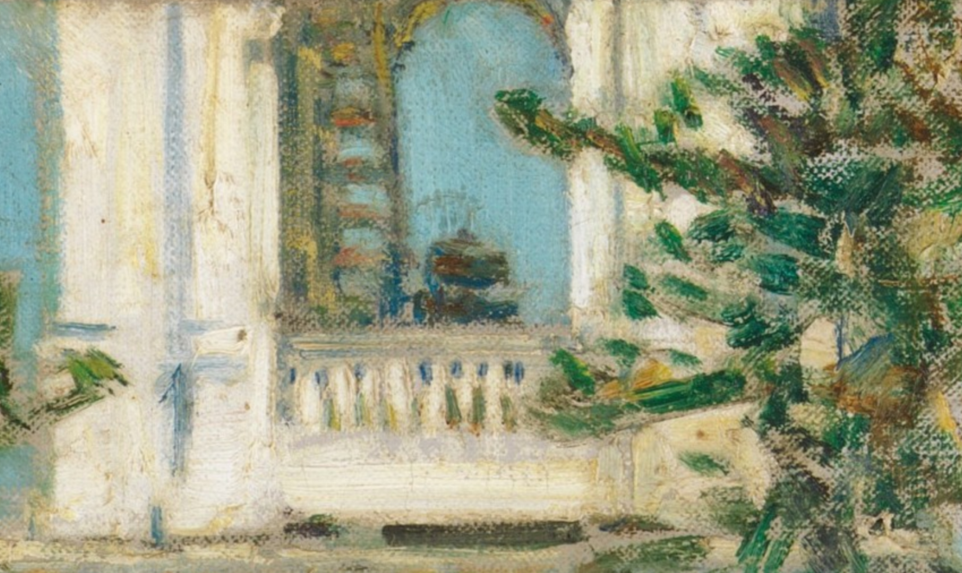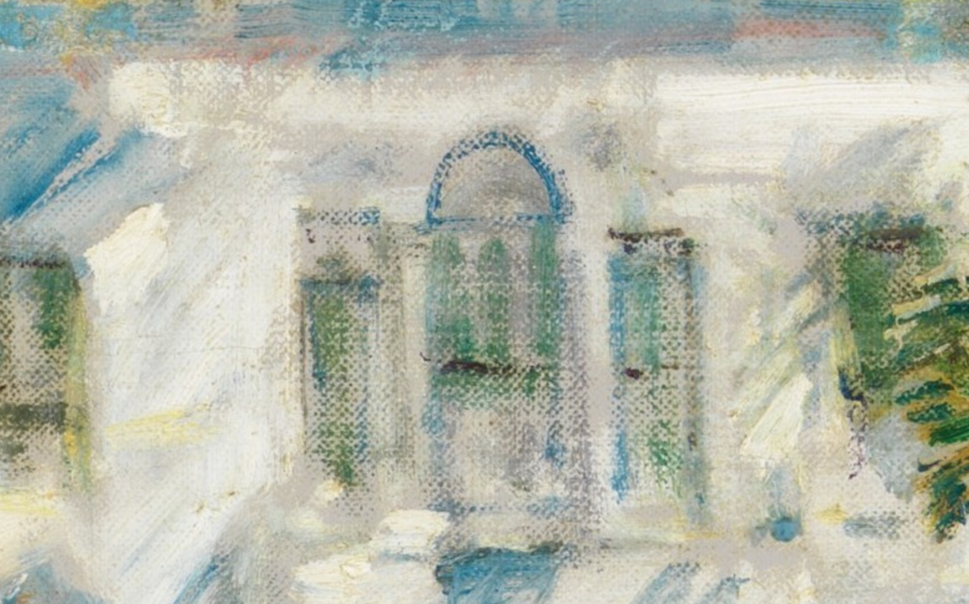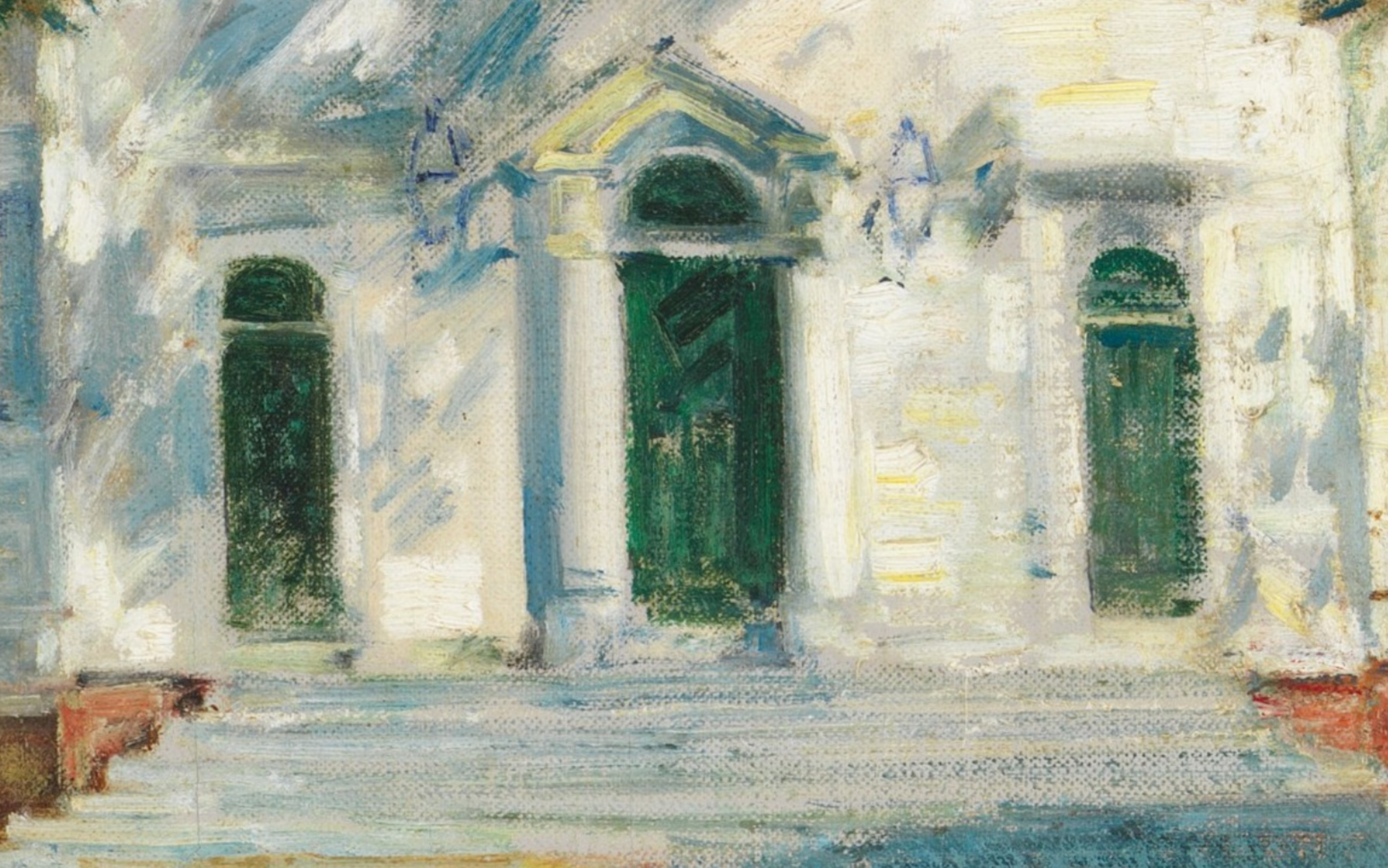 This is a lovely painting. It has me wanting to walk up to the building to look at it close up.