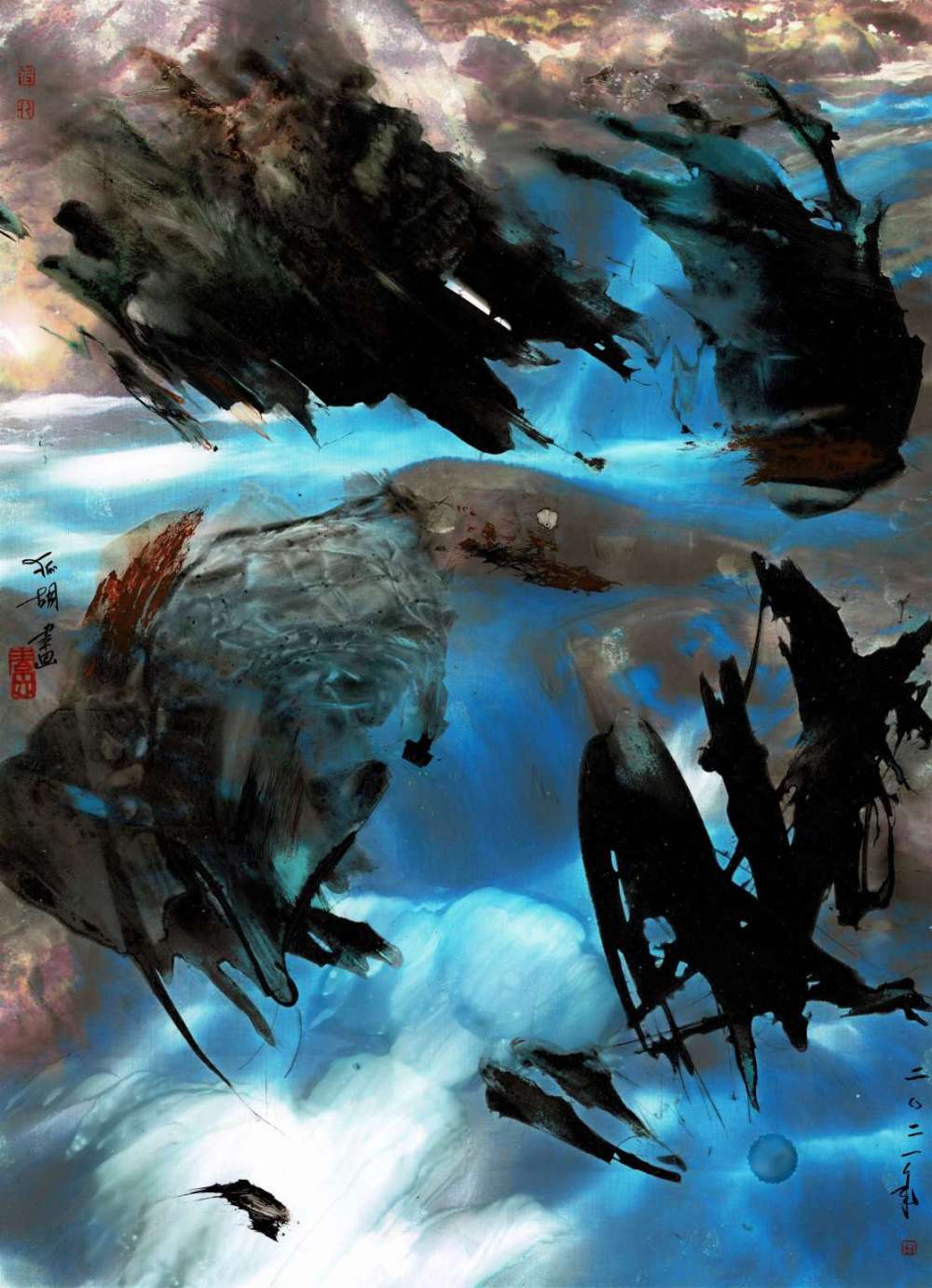 Your painting, like a Rorschach inkblot, took me to a hawk capturing another bird and the battle that ensues! A beautiful painting!