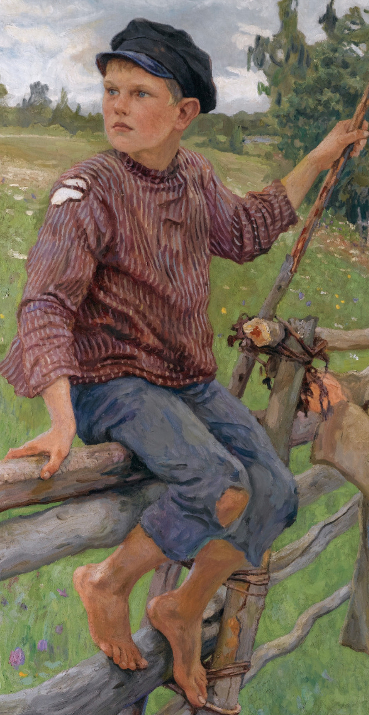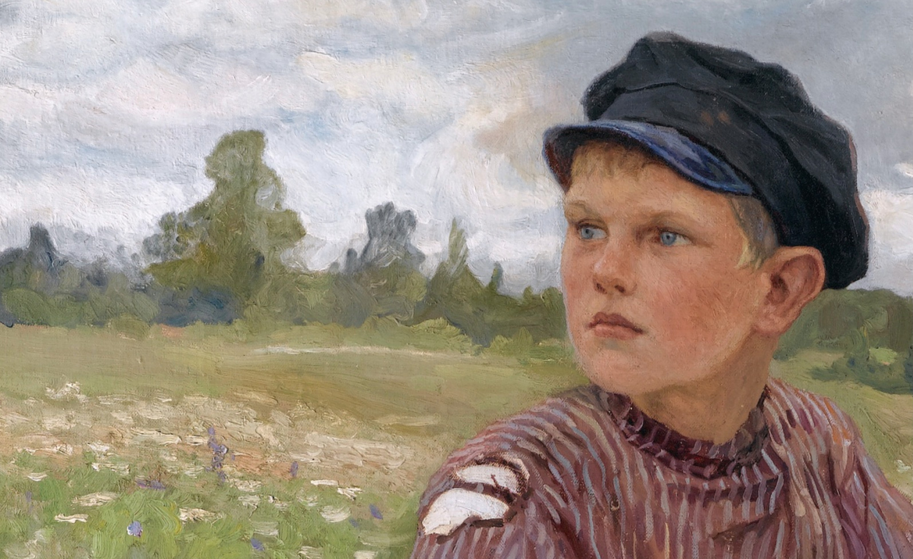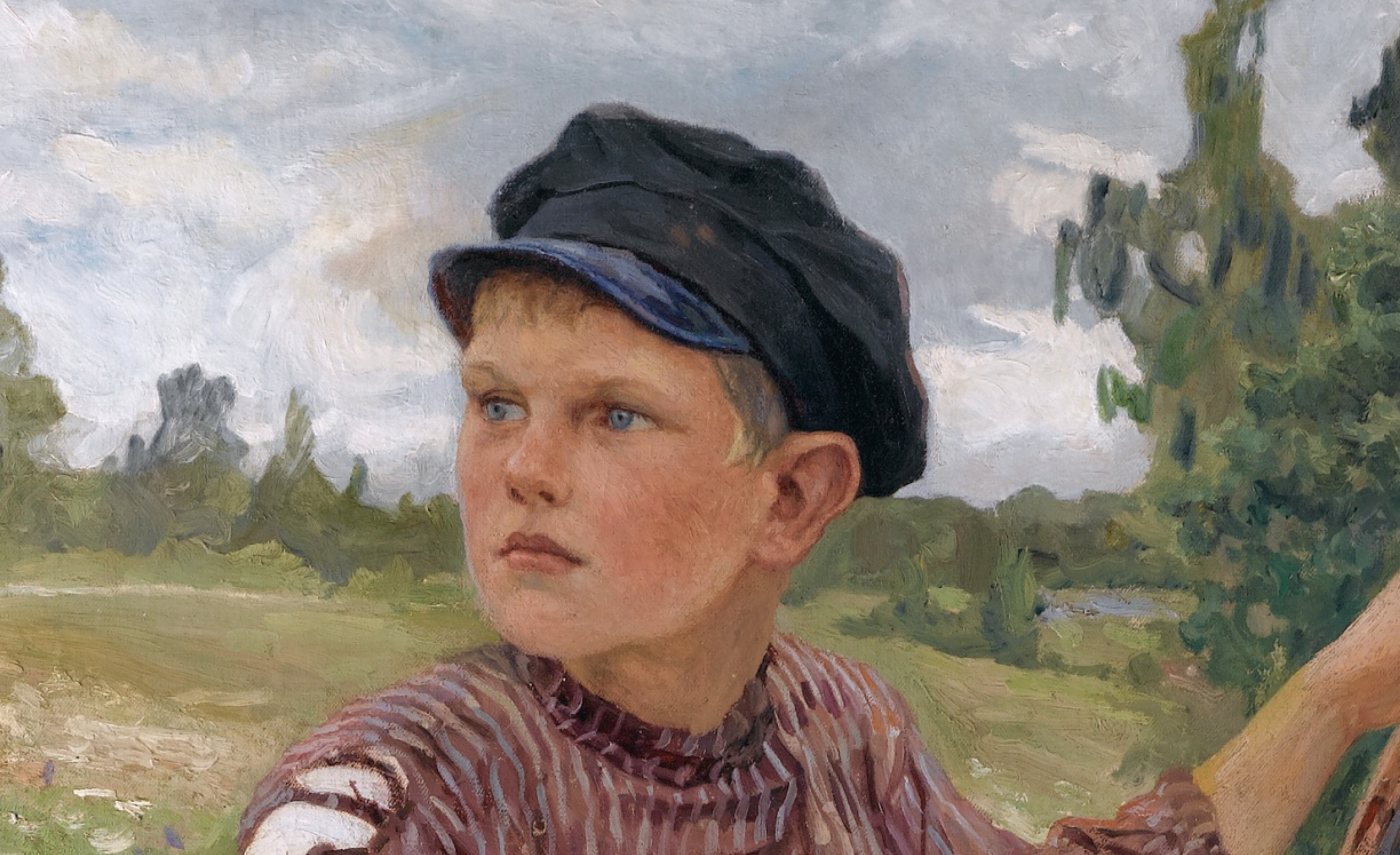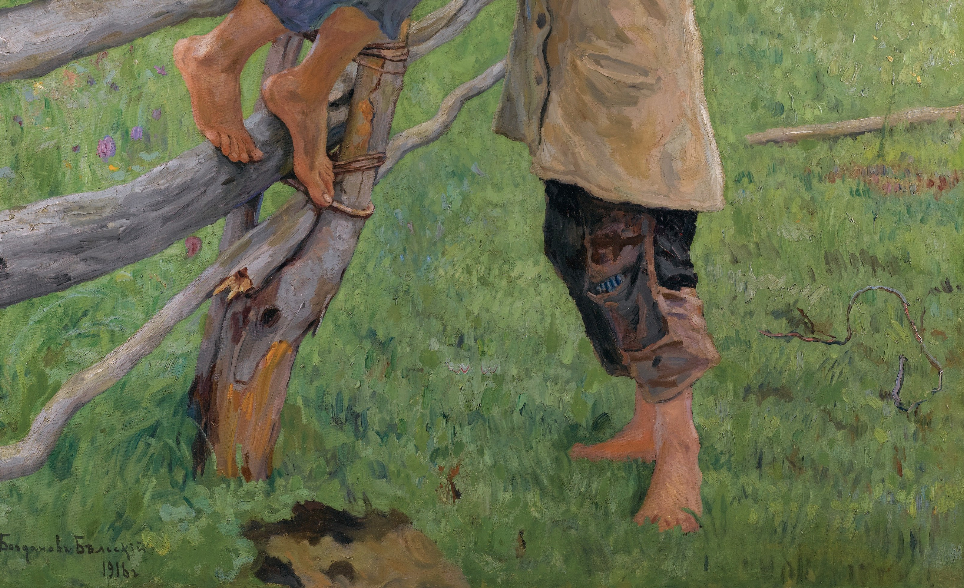 Nikolai Petrovich Bogdanov-Belsky, (1868-1945), Country Boys, signed in Cyrillic and dated 1916 l.l., oil on canvas, 153 by 124cm, 60 1/4 by 48 3/4 in., Source: Sotheby’s. (detail).