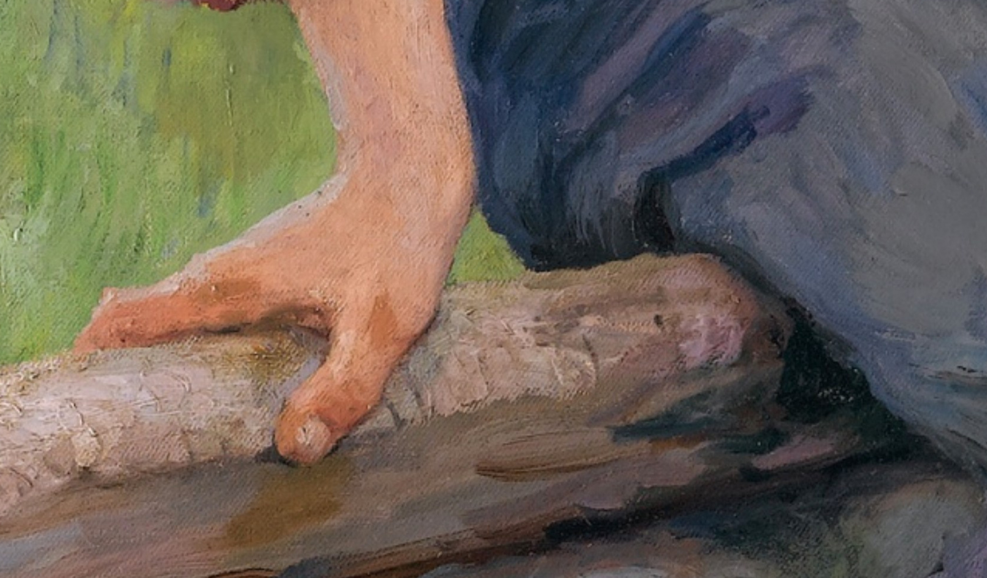 Bogdanov-Belsky’s pre-revolutionary works include some of his most striking canvases, the scale alone often an indication of his artistic confidence. The present lot is an exceptional example of the qualities that mark out these rare, early paintings – tight brushwork, vivid blues and greens, and an impact that would grow gradually more diffuse with the looser strokes and muted palette that appear at times in his later works.