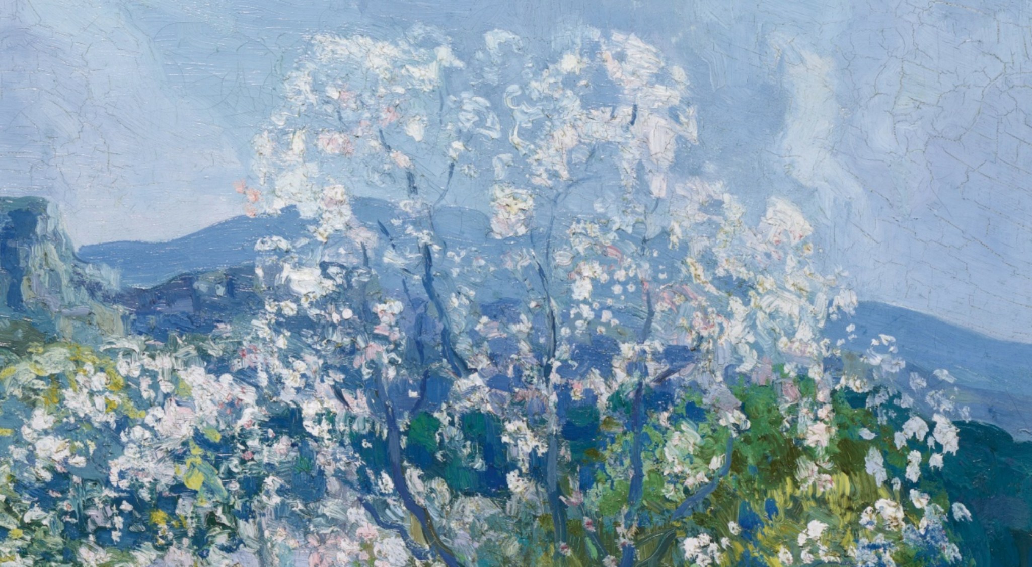 Referencing the Japanese prints the artist had certainly seen in Paris, the present work depicts that wonderful time of the year when, between the end of January and the beginning of February, Mallorcan almond trees start blossoming, covering the island with stunning white flowers.