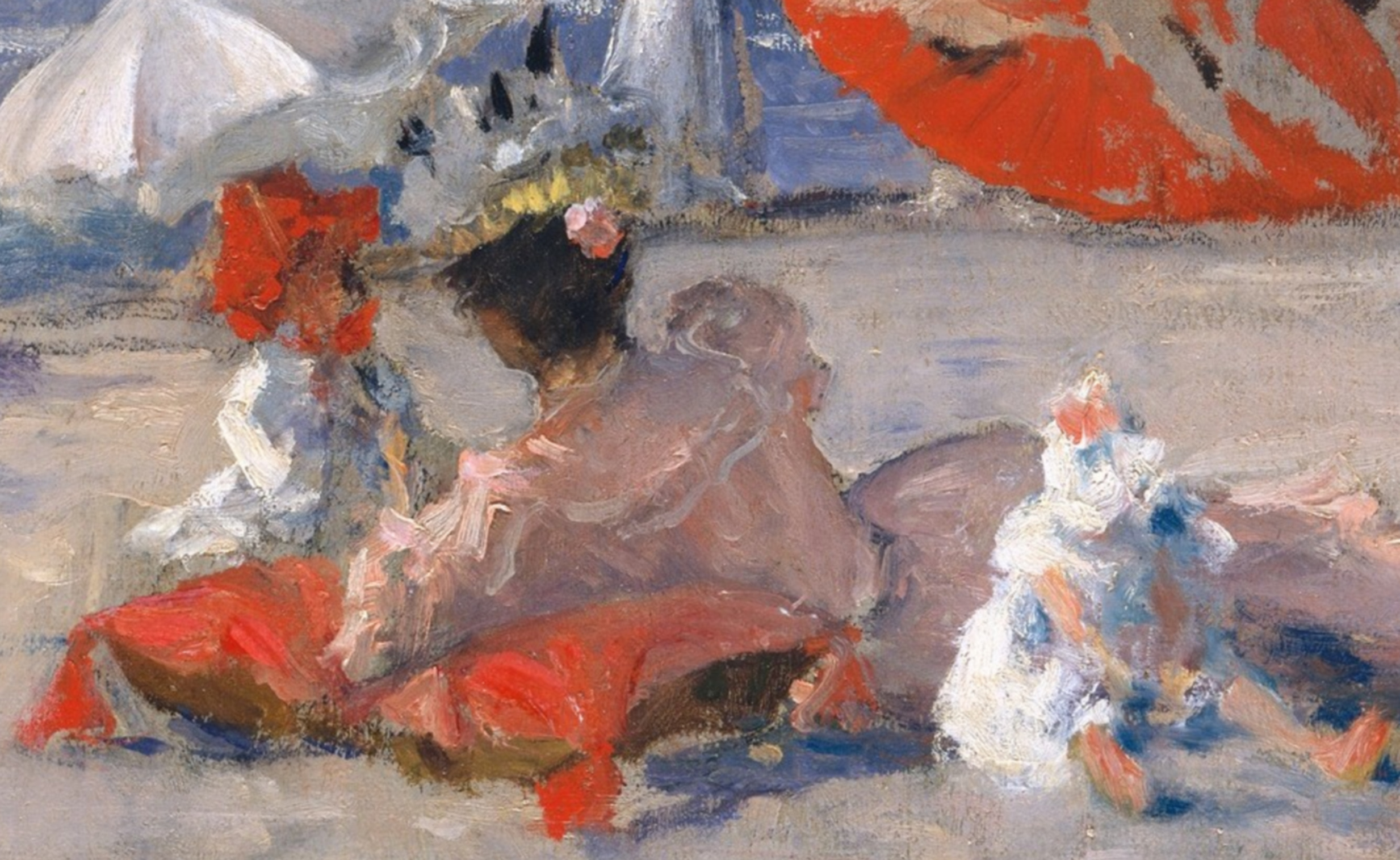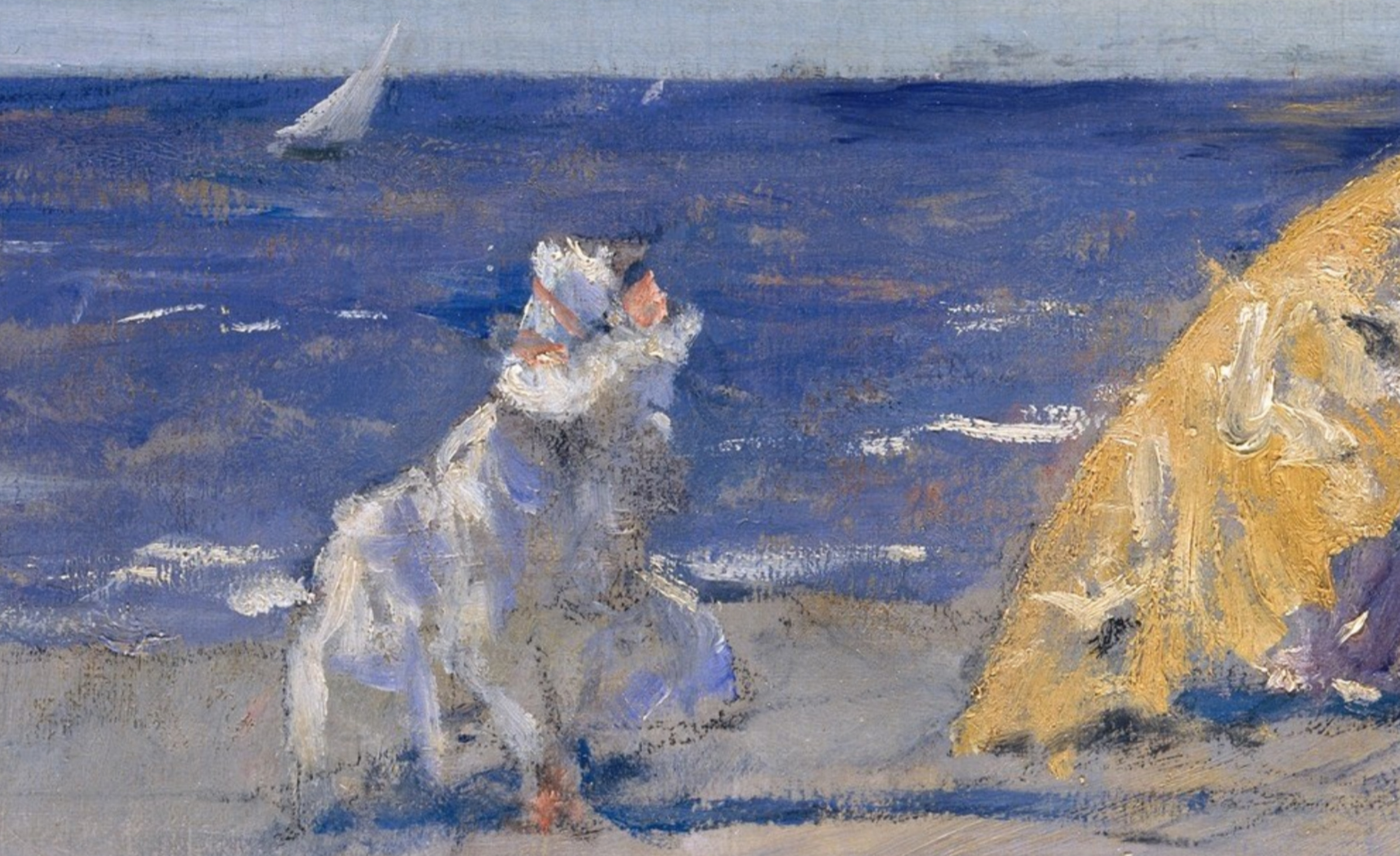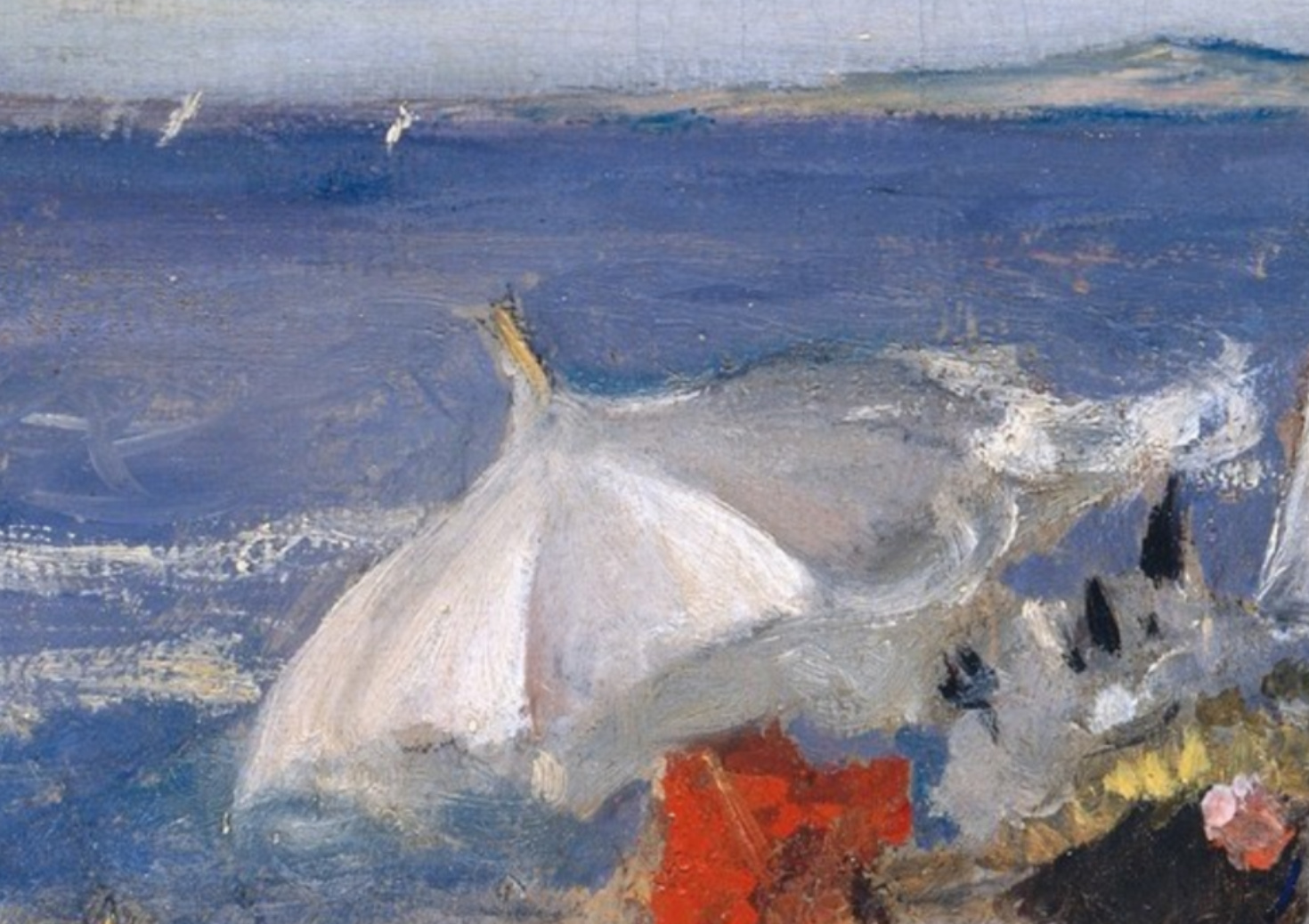 Beginning in 1891 Chase taught at a summer art school in Shinnecock, Long Island. The following year, he and his family moved into their new summer home, Shinnecock Hall… Chase taught at the beach resort until 1902, conducting open-air classes for as many as a hundred students each summer. This work is characteristic of the outdoor scenes that Chase painted during the 1890s on Long Island beaches.
