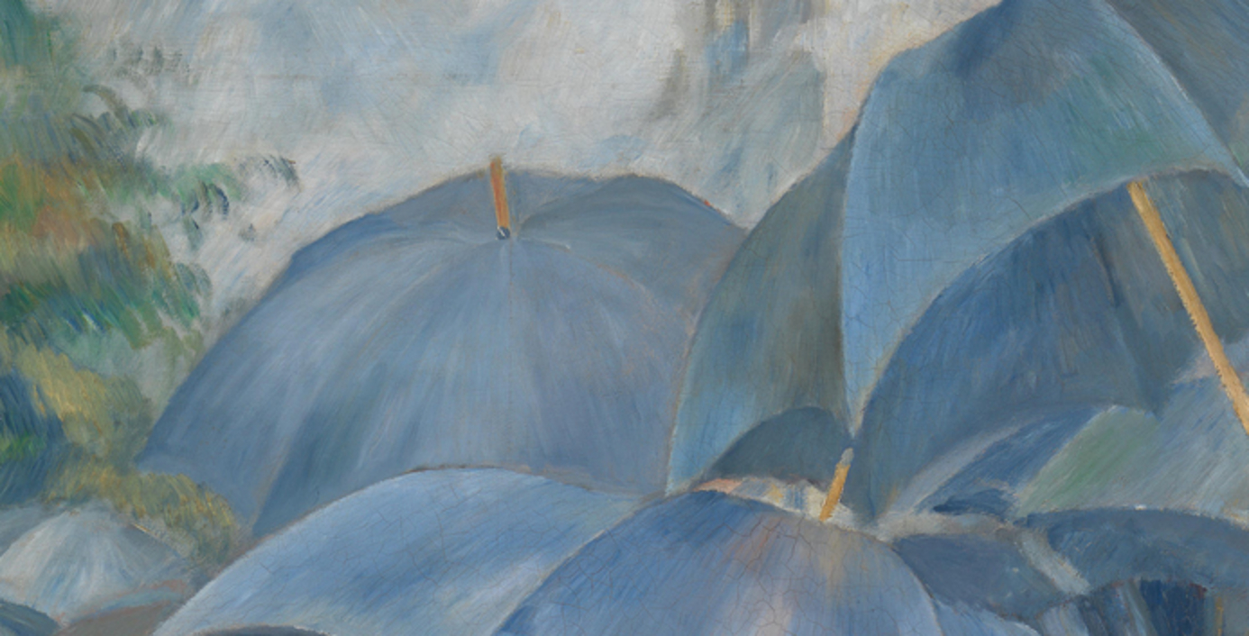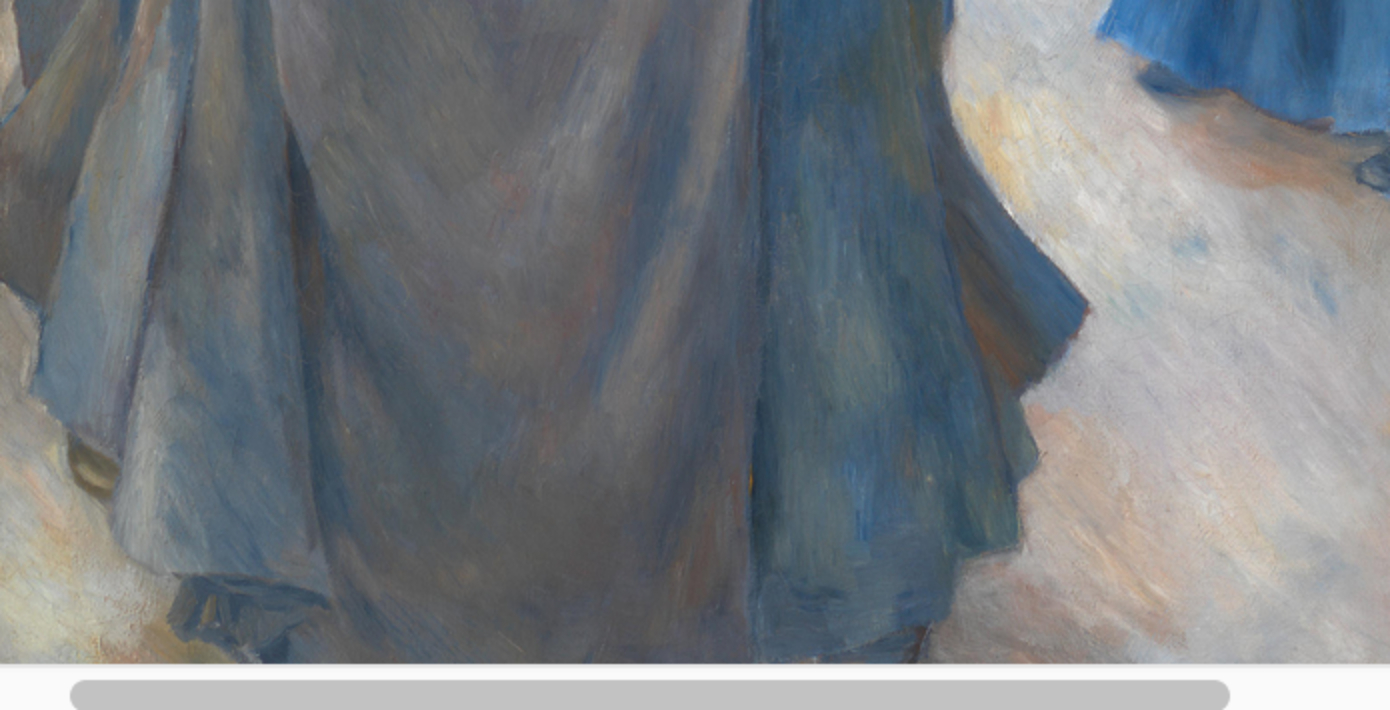 “Painted in two stages, with a gap of around four years between each stage, it shows the change in Renoir’s art during the 1880s, when he was beginning to move away from Impressionism and looking instead to classical art. The group on the right, which includes a mother and her two daughters and the woman in profile in the centre, is painted in a characteristically Impressionist manner with delicate feathery touches of rich luminous tones. On the left of the composition, completed during the second stage, Renoir adopted a more linear style. The figures here, including the full-length young woman and the man standing behind her, have clearly defined outlines, precisely drawn features and a greater sense of three-dimensional form.”