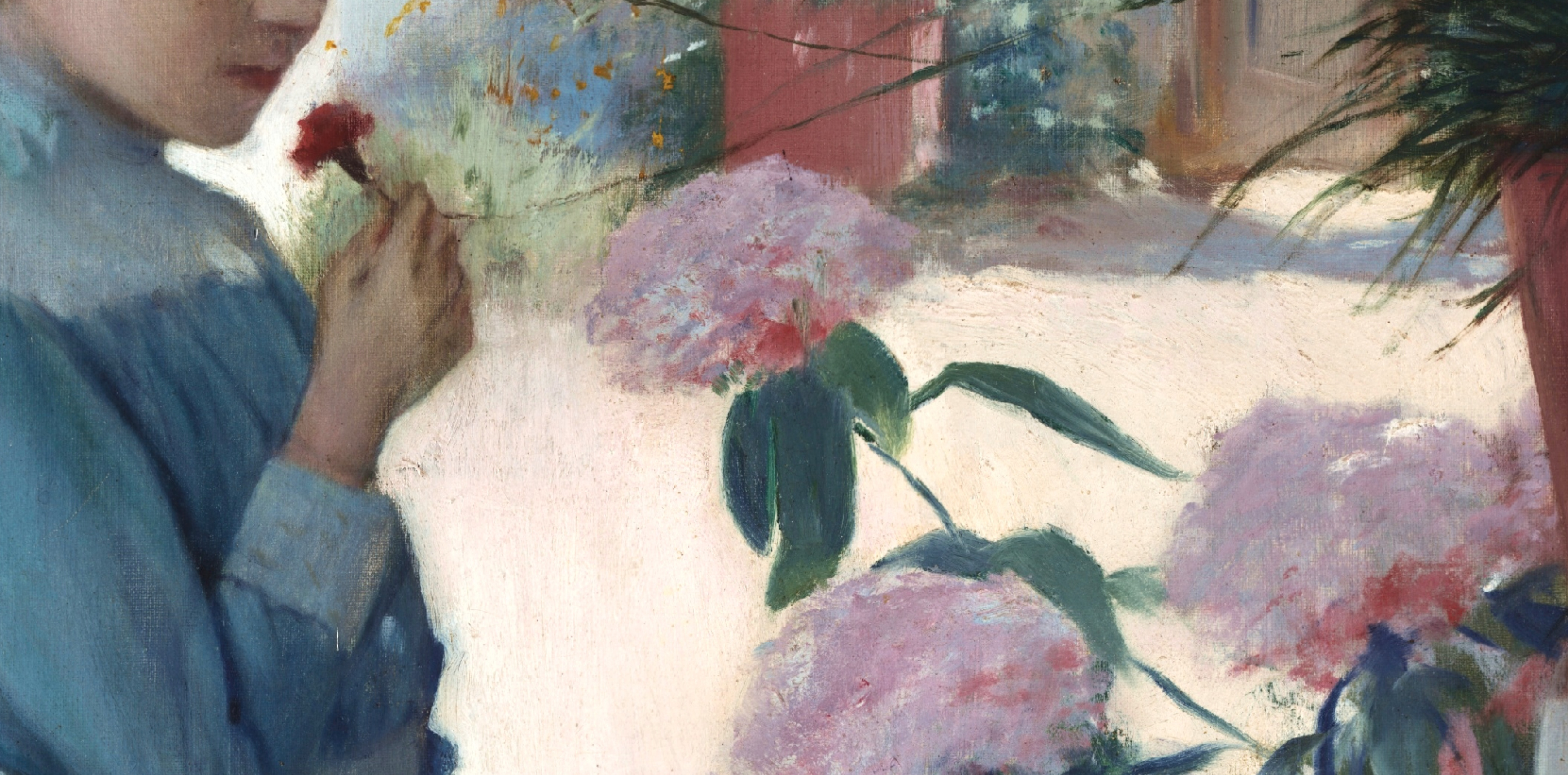 The girl with carnation, (Teresa Mirabent Planas), Santiago Rusiñol (1893), from the collection of Cau Ferrat Museum, Image credit: Google Arts and Culture