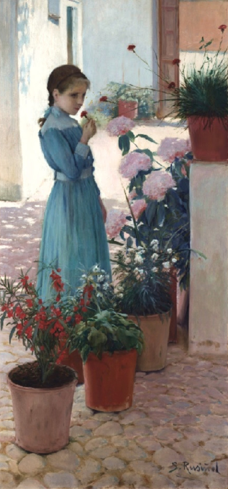 That’s why one of the topics that attracted more Rusiñol was precisely the blue patios. Perhaps one of the most famous samples can be found in the museum of Montserrat; however in Cau Ferrat we find three examples: “the Suburense patio” (Brollador room), “the girl in white” by Ramon Casas (in the same room) and this painting.