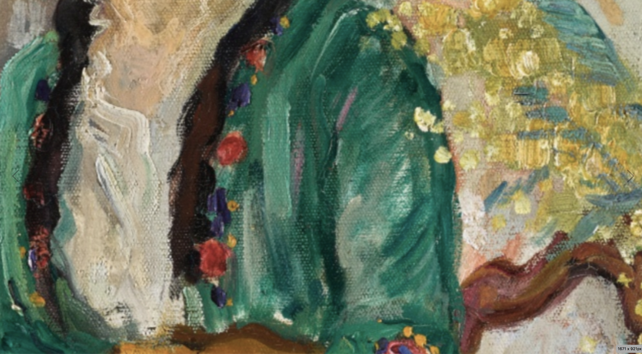 New painter to me. Ravishing. It’s interesting to see the texture of the canvas peeping through thin pigment in the face detail. I like that. The tablecloth seduces me because I’m hung up on purples and yellows. Also, the green of their attire really pops. In her commentary Banner twice uses the term “close.” Perhaps it refers to a compressed quality of the composition? Or a critical term of art I’m not familiar with? Or close family members as subjects? I’m grossly overthinking this now, and feeling foolish!