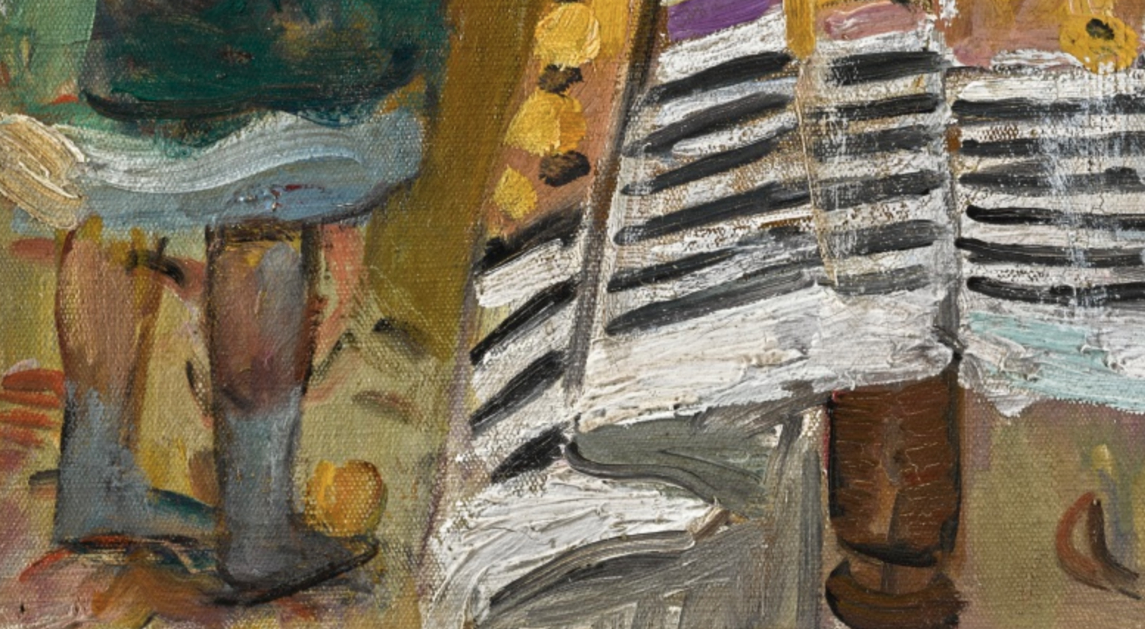 New painter to me. Ravishing. It’s interesting to see the texture of the canvas peeping through thin pigment in the face detail. I like that. The tablecloth seduces me because I’m hung up on purples and yellows. Also, the green of their attire really pops. In her commentary Banner twice uses the term “close.” Perhaps it refers to a compressed quality of the composition? Or a critical term of art I’m not familiar with? Or close family members as subjects? I’m grossly overthinking this now, and feeling foolish!