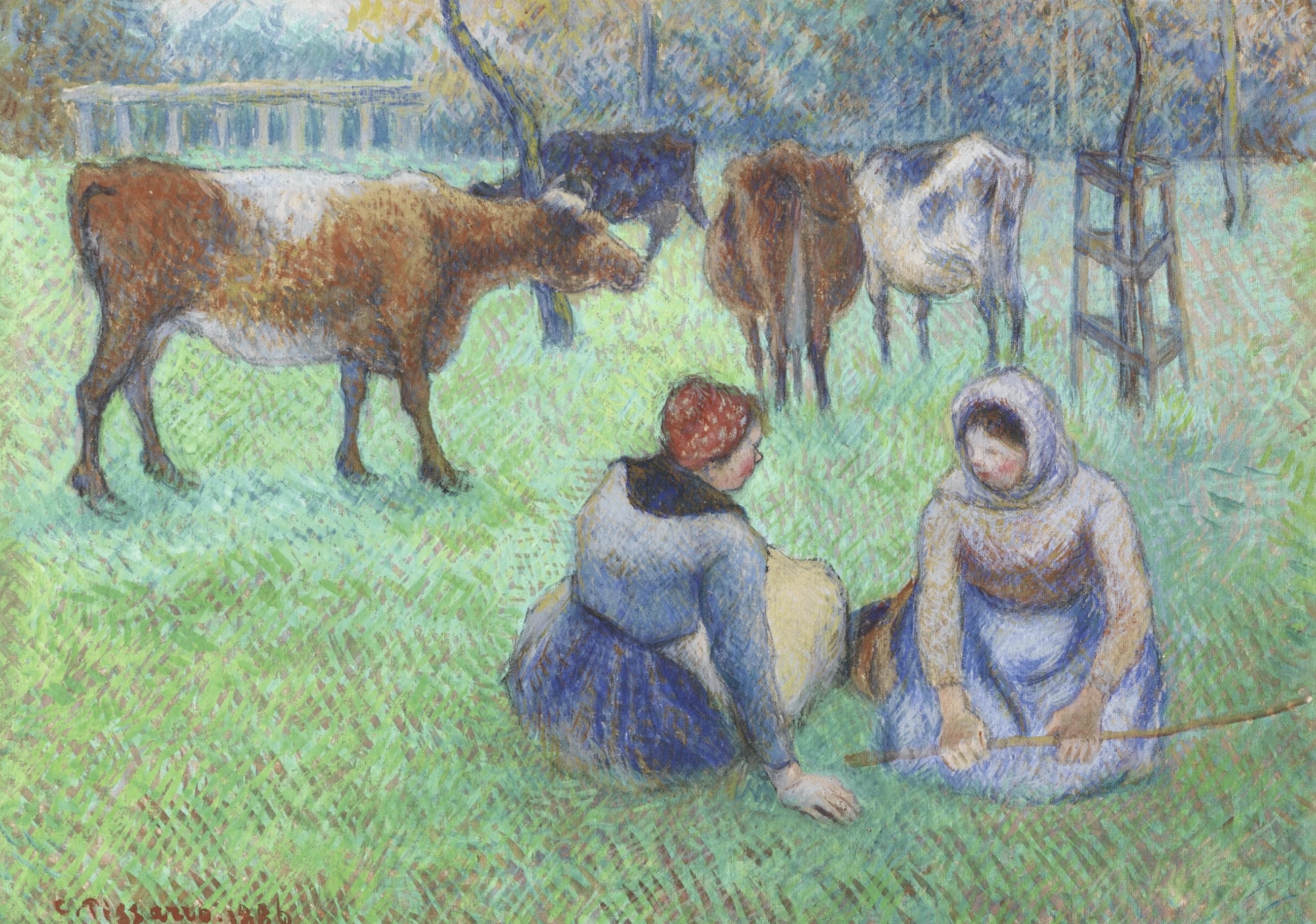“Painted in 1886, Paysannes assises gardant des vaches, is an example of the Divisionist style, which Pissarro explored for the first time for the eighth and final Impressionist exhibition of 1886, and which he went onto develop over the years that followed. According to Pissarro, Impressionism was already in decline in 1883. While painting peasants … Continue reading Camille Pissarro: Paysannes assises gardant des vaches