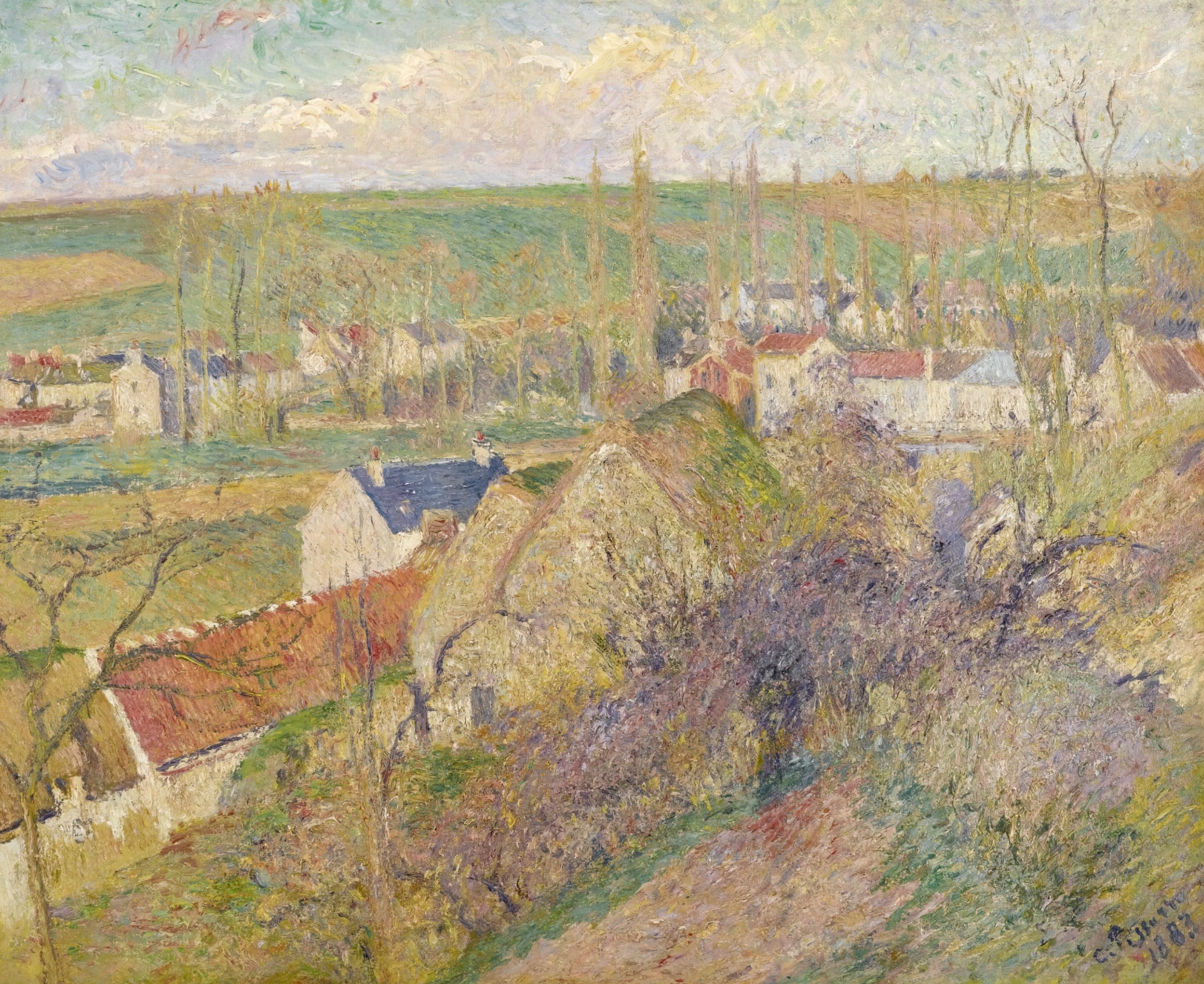“Painted in 1883, Vue sur le village d’Osny is a wonderfully accomplished work dating from Pissarro’s last ‘Pontoise Period’ before the artist left the region for Éragny in 1884…The complex perspective, showing the two parts of the village bisected by a row of poplar trees and a foreground of dense impasto, illustrates the remarkable breadth of … Continue reading Camille Pissarro: Vue sur le village d’Osny