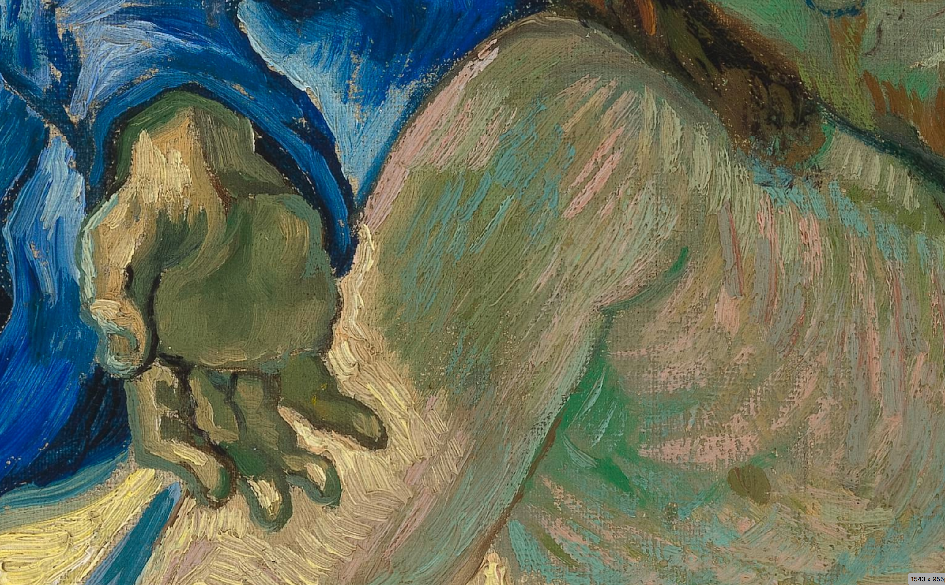“Good – since I’m above all ill at present, I’m trying to do something to console myself, for my own pleasure. I place the black-and-white by Delacroix or Millet or after them in front of me as a subject. And then I improvise colour on it but, being me, not completely of course, but seeking memories of their paintings – but the memory, the vague consonance of colours that are in the same sentiment, if not right – that’s my own interpretation.”