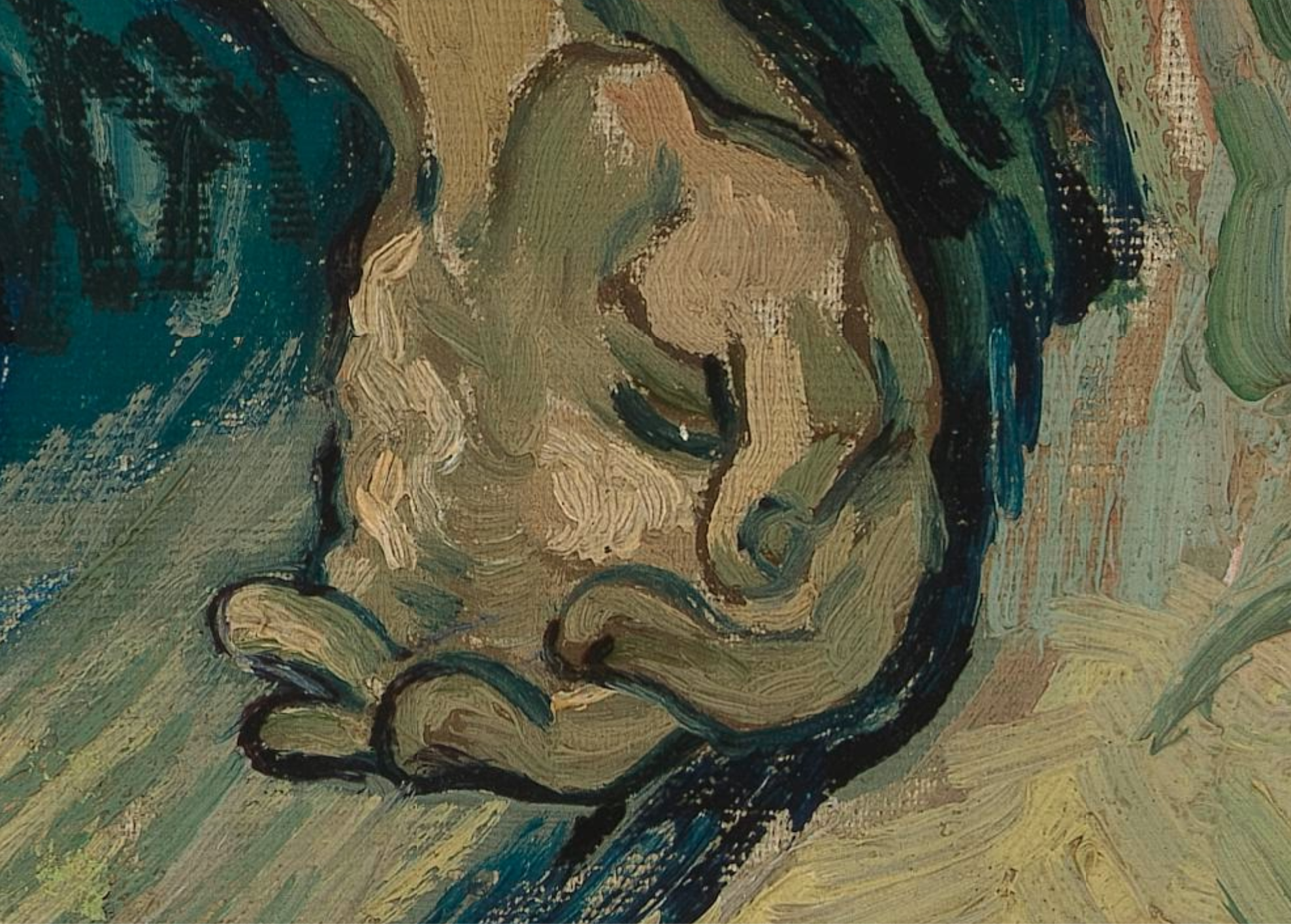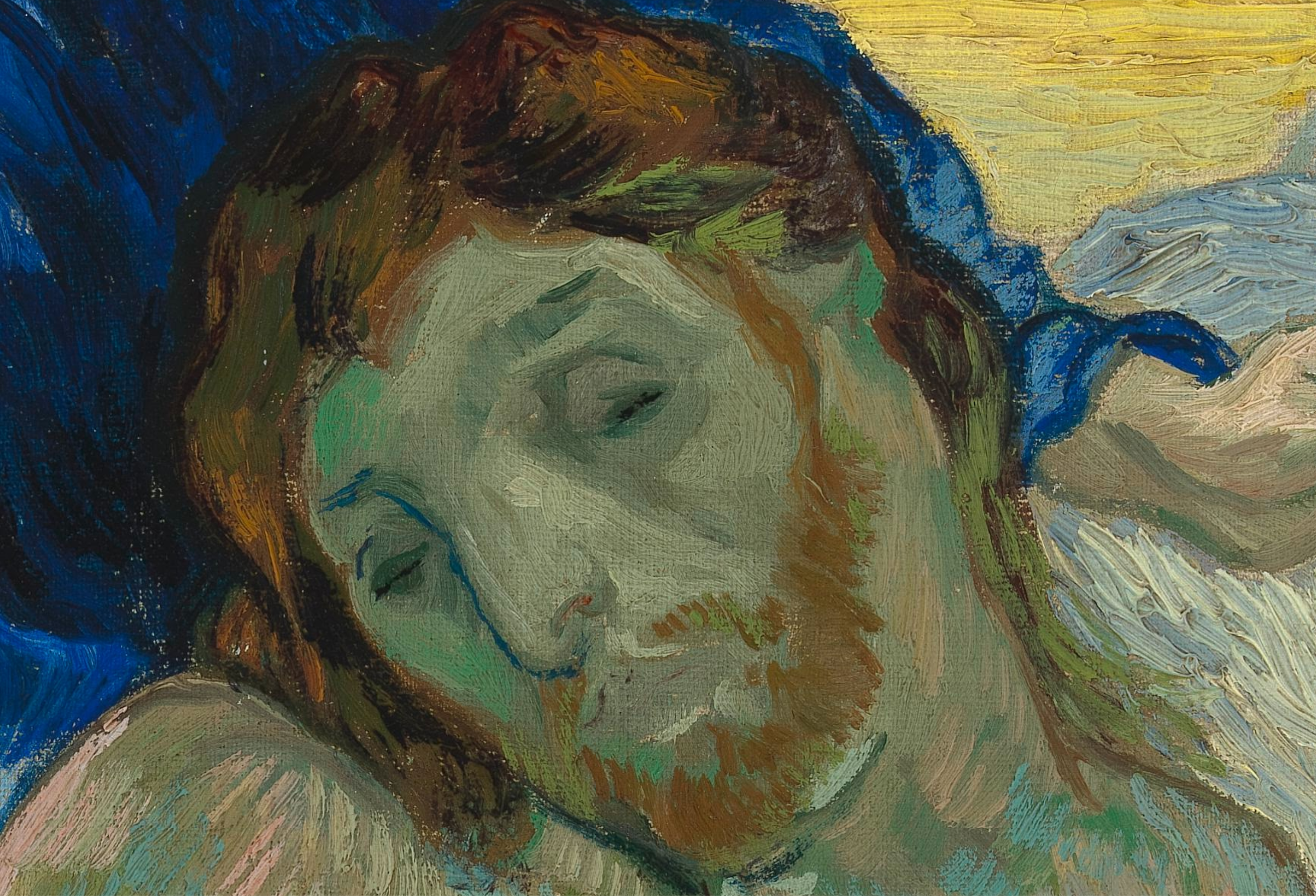 Van Gogh creates the Pietà paintings after Célestine François Nanteuil-Leboeuf’s black and white lithograph of Delacroix’s Pietà. The subject and composition from the original remain, but Van Gogh lends his own style to the artwork. Delacroix’s influence helped van Gogh develop artistically and gain knowledge of color theory.