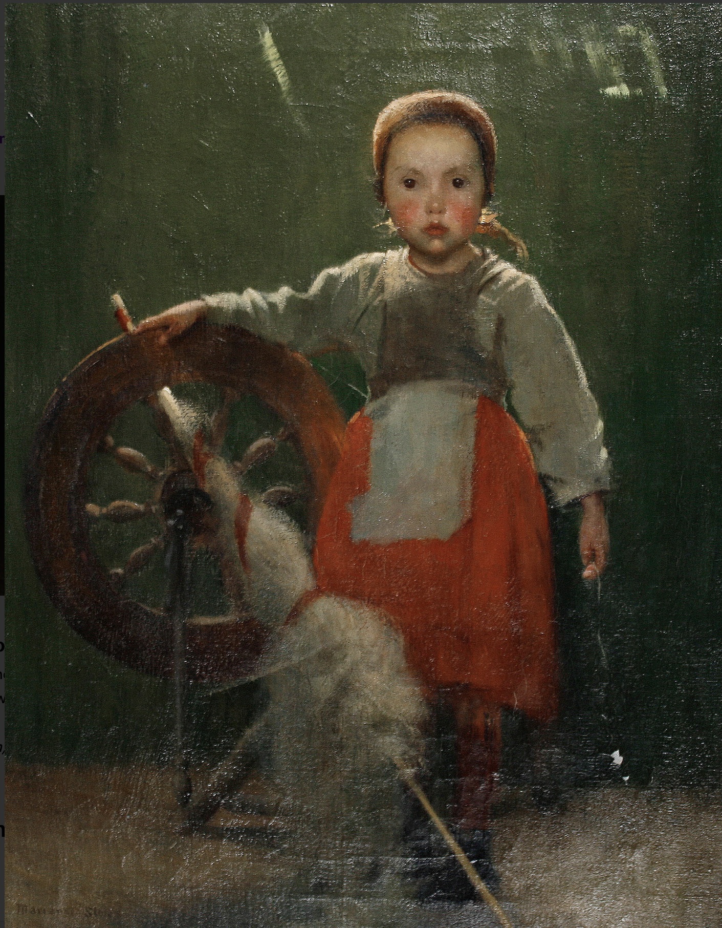 Marianne (Preindlsberger) Stokes (Austrian, 1855-1927), Young girl with a spinning wheel, signed ‘Marianne Stokes’ (lower left), oil on canvas, 44.5 x 34cm (17 1/2 x 13 3/8in), Image Source: Bonhams