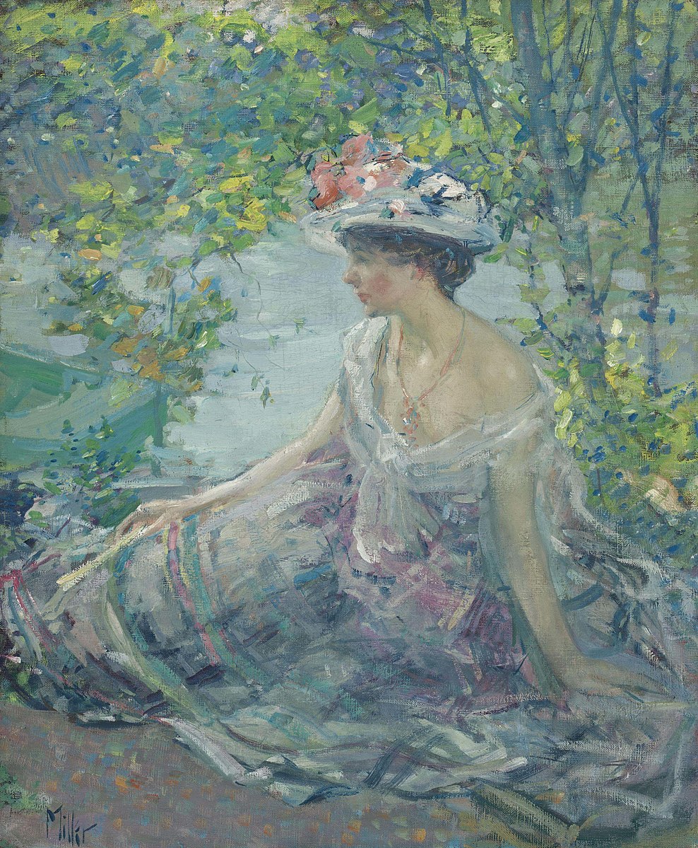 Richard Edward Miller (1875-1943) Summer Idyll, signed ‘Miller’ (lower left) oil on canvas ,28 ¾ x 23 ¾ in. (73 x 60.3 cm.) Painted circa 1910-14, Image Source: Christie’s