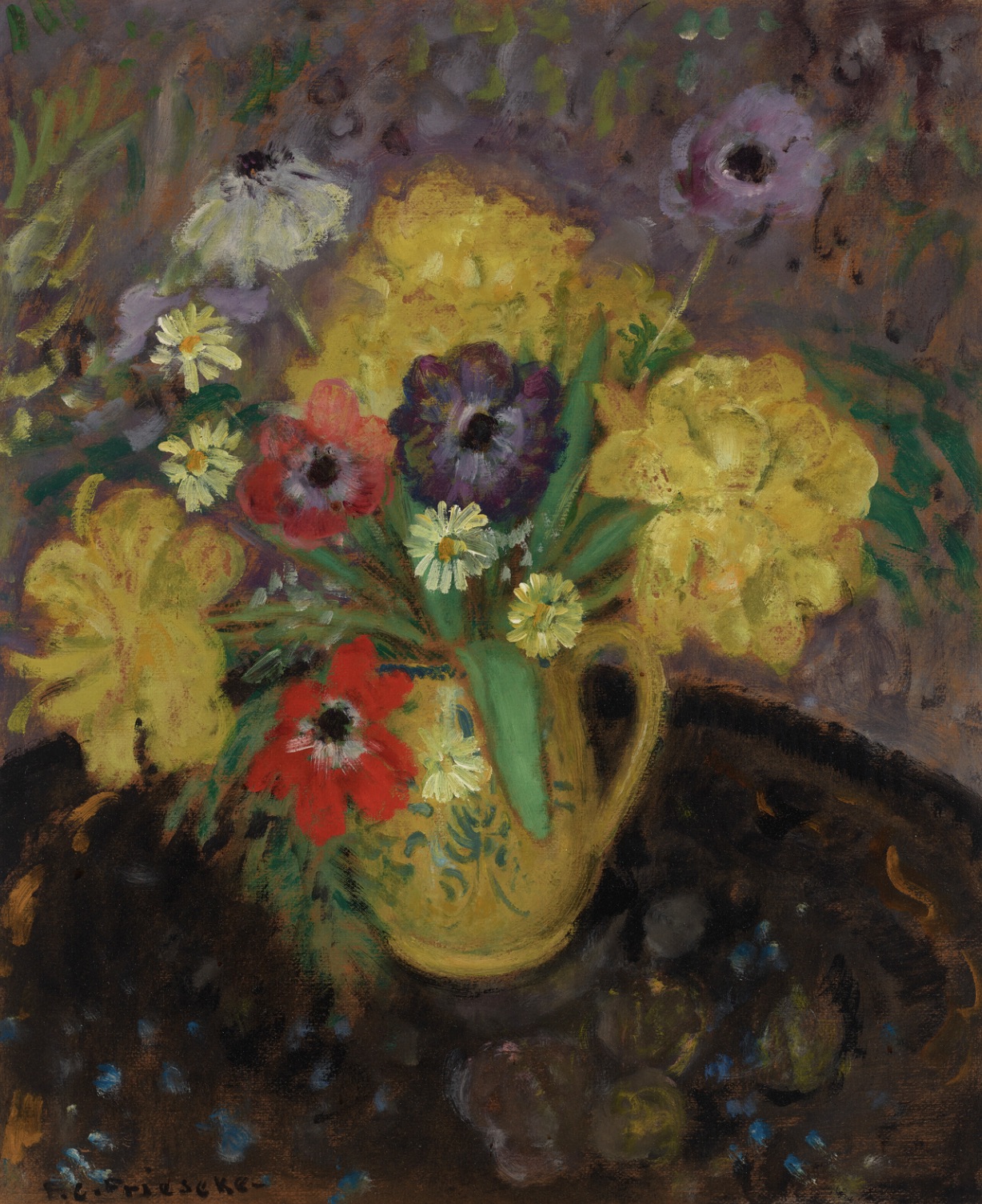 FREDERICK CARL FRIESEKE (1874-1939) Les Tulipes Jaunes signed ‘F.C. Frieseke-‘ (lower left) oil on paperboard 23 3⁄4 x 19 1⁄2 in. (60.3 x 49.5 cm.) Painted circa 1925, Image Source: Christie’s