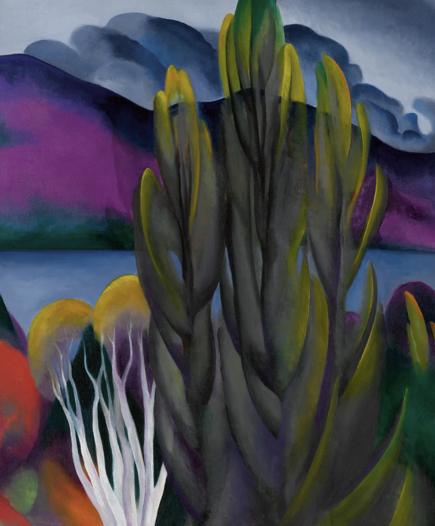 “Lake George with White Birch marks a fundamental departure from O’Keeffe’s predecessors, one that is much more in keeping with her European peers such as Wassily Kandinksy and Emil Nolde in its strikingly emotive use of color. Rather than merely transcribing nature she successfully alters the landscape to convey the true spirit of the place and the impact of the fiery autumnal scene on her personally. This pivotal painting demonstrates O’Keeffe’s distillation of various influences into her own unique style. “From [Arthur Wesley] Dow and art nouveau O’Keeffe had learned about composition and design, from Picasso and Braque she had received instruction about form and structure, and from Kandinksy and Matisse she had garnered invaluable insights into color. From Stieglitz and other photographers she learned how to read photographs, how to appropriate some of their strategies, and how she could both utilize and undercut the mimetic properties of the medium in order to present ‘the real meaning of things’” (ibid., p. 289).”