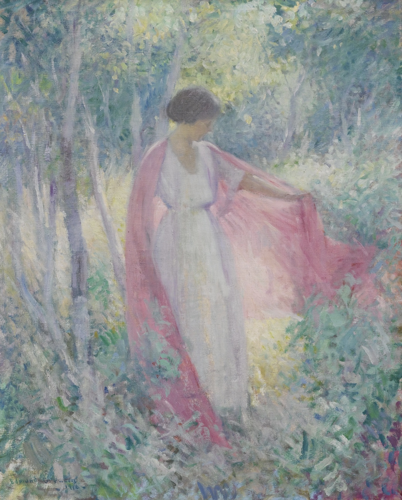 Edmund William Greacen, (American, 1876–1949), In the Garden, signed Edmund Greacen and dated 1916 – (lower left), oil on canvas, 32 1/2 by 26 1/4 inches, (82.5 by 66.7 cm), Image Source: Sotheby’s