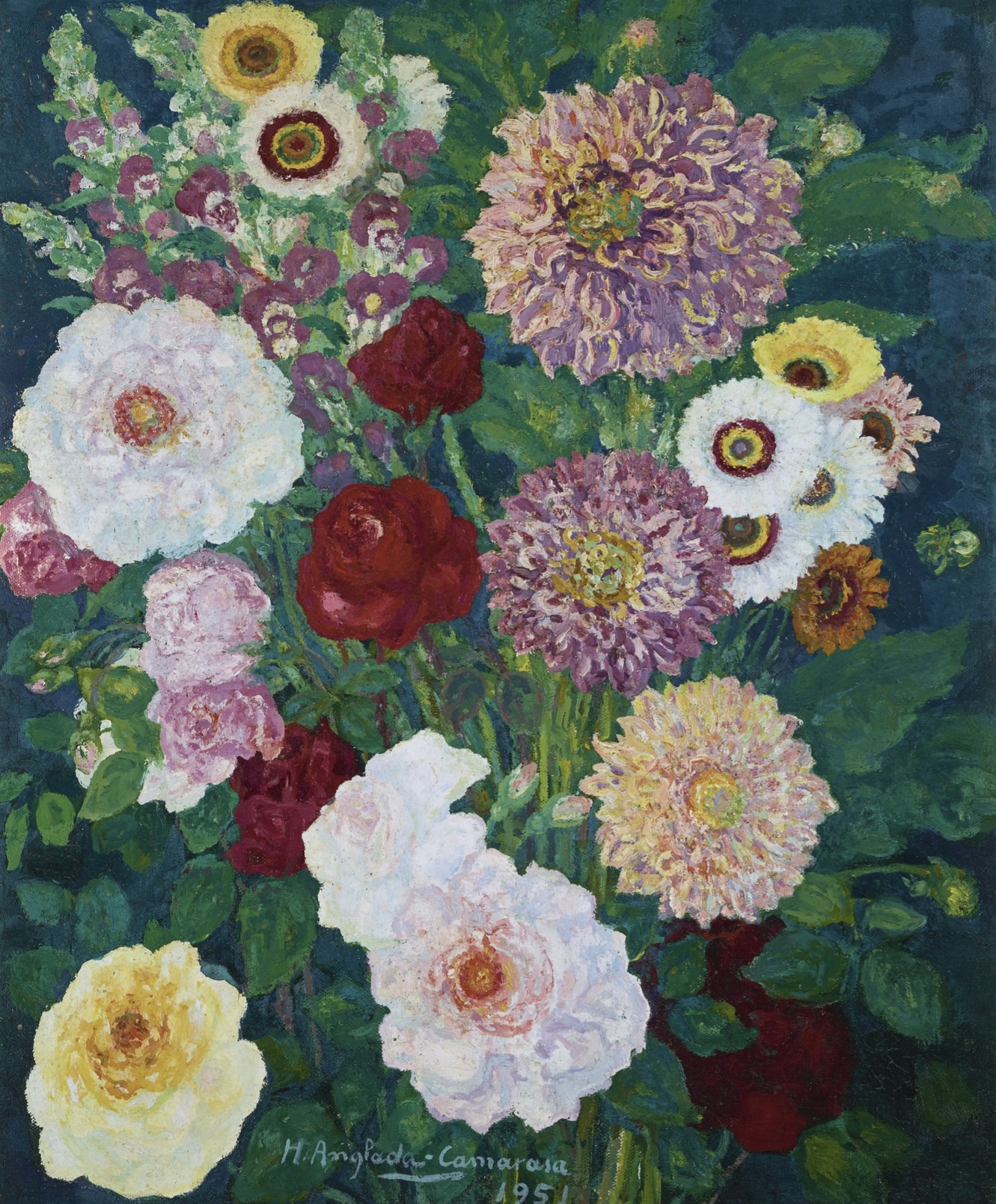 Hermenegildo Anglada-Camarasa (Spanish, 1872-1959), Dahlias and other Flowers, signed and dated H. Anglada-Camarasa / 1951 lower centre, oil on canvas, 59.5 by 49cm., 23½ by 19in., Image Source: Sotheby‘s