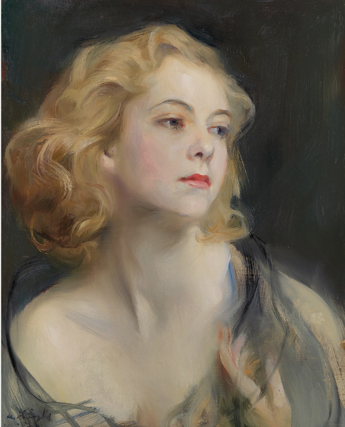 “Philip de László was one of the most stylish and successful portrait painters of the late nineteenth and first half of the twentieth centuries. Like John Singer Sargent (1856-1925), he was an exponent of the fluidly-painted ‘swagger portrait’, but always managed to capture a sense of the sitter’s interior life, sometimes with a tinge of romantic melancholy…Strongly influenced by the work of Velásquez, de László wrote in 1936: ‘the picture must show us the spirit by which the human form is vitalised…it must provide the sitter with the surroundings and atmosphere which are suitable to his personality and consistent with his state of life’.”