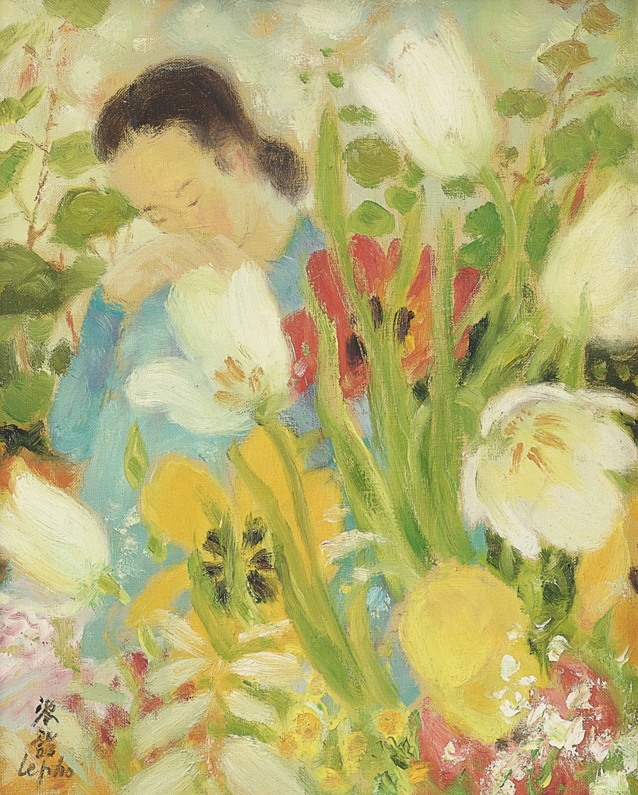 Le Pho: Young Woman with Flowers
