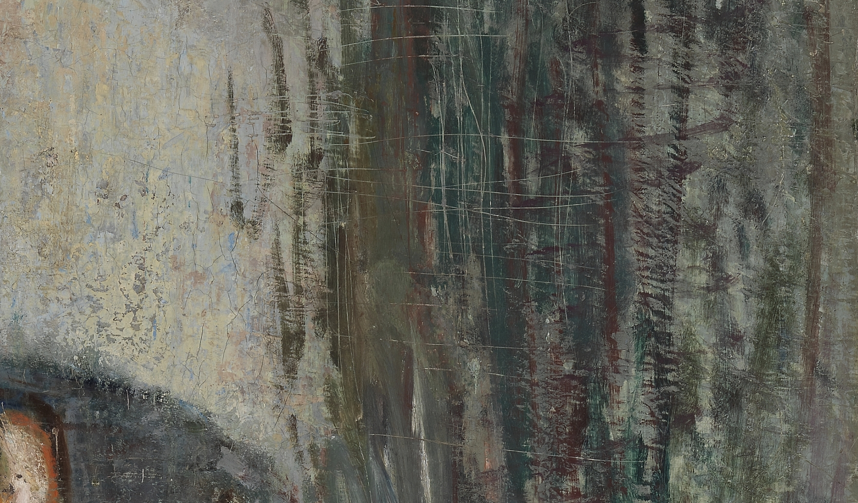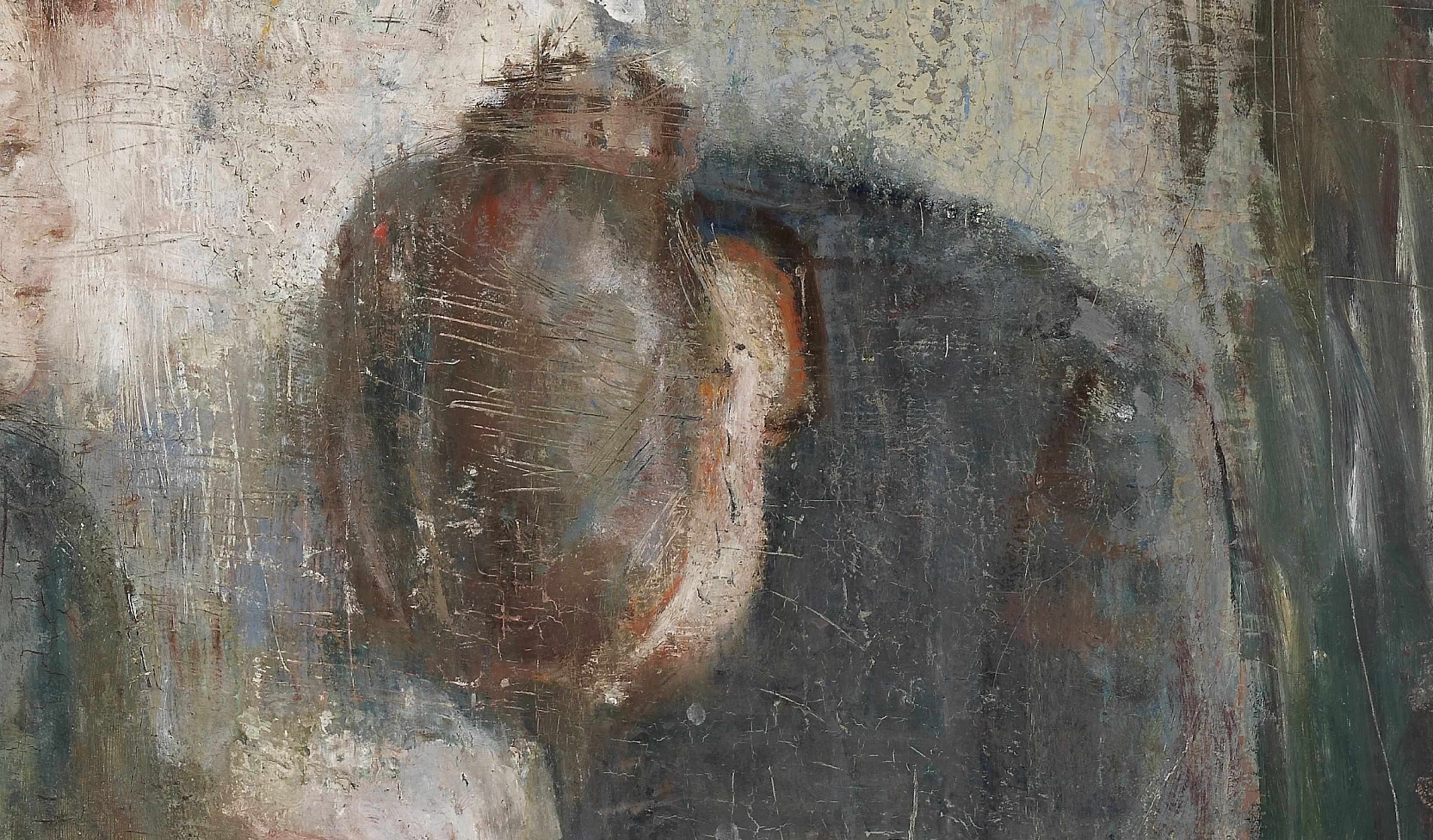 The Sick Child is one of Munch’s earliest works, considered by the artist “a breakthrough” for setting the tone for his early career in which death, loss, anxiety, madness, and the preoccupations of a troubled soul were his chief subject matter. Devoted to his deceased sister, Johanne Sophie, the painting depicts the bedridden fifteen-year-old with a grieving woman beside her, the latter probably a representation of Munch’s mother who had preceded Sophie in death, also from tuberculosis, eleven years prior. The rough brushstrokes, scratched surface, and melancholic tones of this painting all reveal a highly personal memorial. The work was highly criticized for its “unfinished appearance” when first exhibited, but nonetheless championed by Munch’s spiritual mentor, Hans Jæger, as a masterful achievement.”