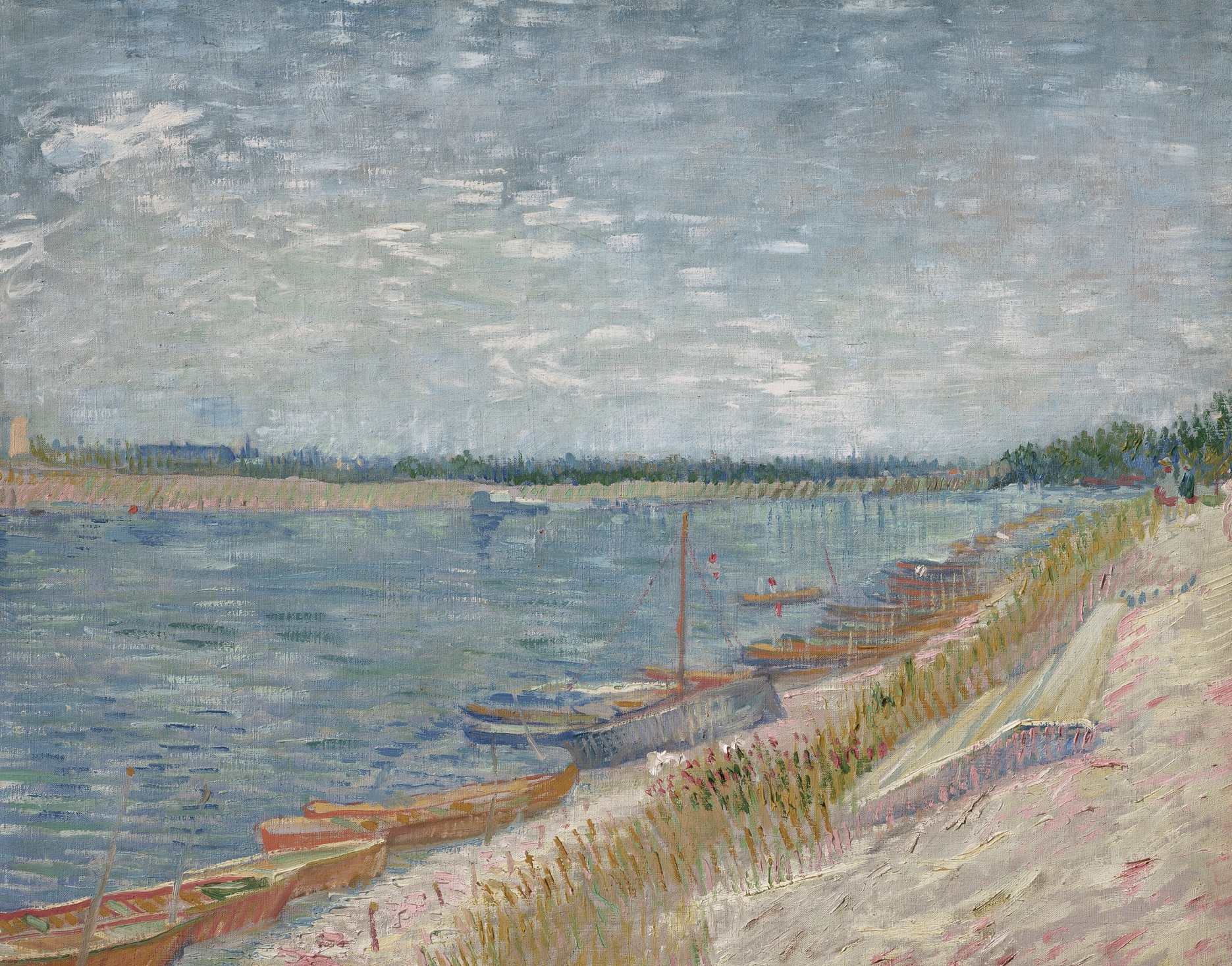 “The artist’s friend, Bernard, provided a fascinating insight into this novel working method. He recalled witnessing Van Gogh, ‘With a large canvas slung on his back, he set off on his journey. He then split it up into so many compartments, depending on the subjects. When evening came, he brought it back, filled up, like a little mobile museum, in which all the emotions of his day were captured. Stretches of the Seine full of boats, islands with blue swings, smart restaurants and multi-colored awnings, oleanders, corners of abandoned parks, and properties for sale’ (quoted in ibid.).”
