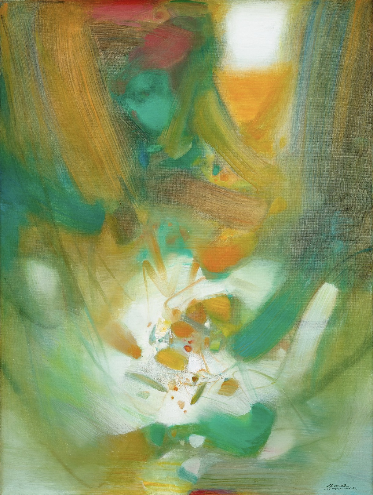 Chu Teh-Chun (1920 – 2014), Diffractions alertes 2, oil on canvas, signed Chu Teh-Chun in Chinese and Pinyin, dated 84 (lower right); signed Chu Teh-Chun in Chinese and Pinyin, dated 1983 and titled Diffractions Alertes 2 on the reverse, painted in 1983-84 , 130 by 97 cm; 51 ⅛ by 38 ⅛ in., Image Source: Sotheby’s