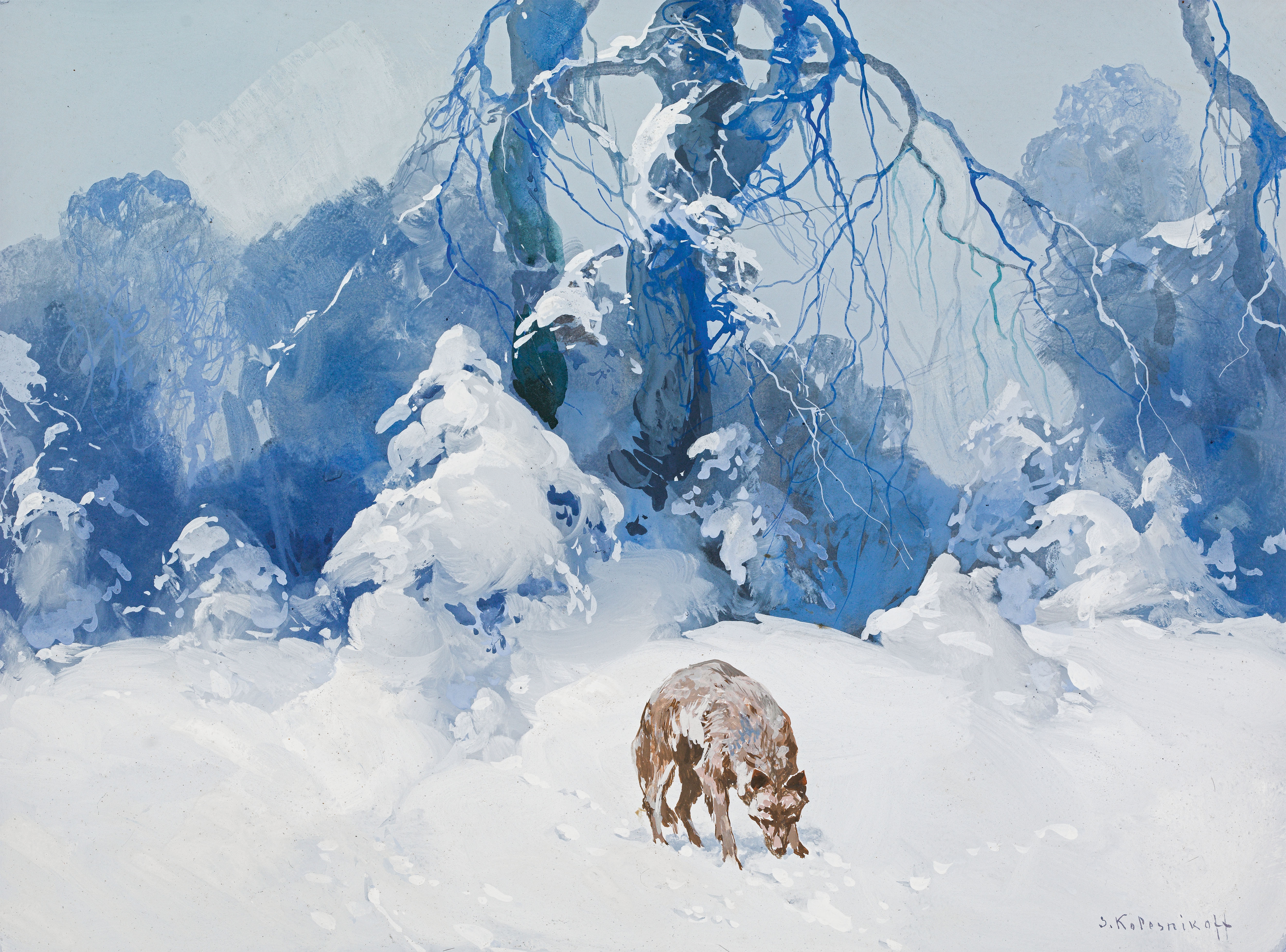 I cant imagine how difficult it would be to paint snow. Kolesnikov’s painting with the wolf is rather marvellous.