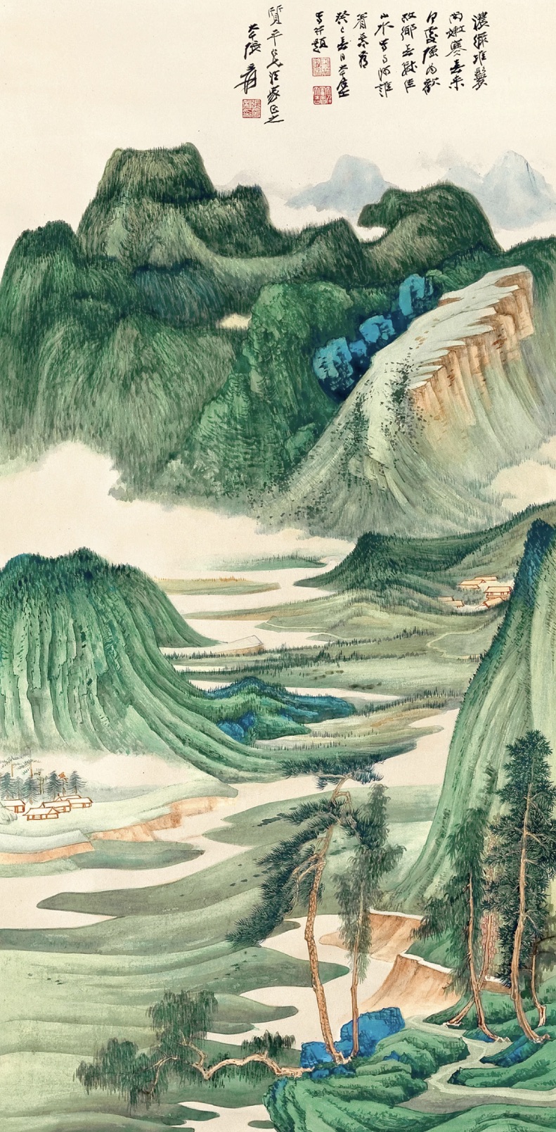 In Spring Mountains of Sichuan, Daqian wrote a deeply felt inscription, unmistakably a nostalgic recollection of the artist’s homeland in Sichuan: