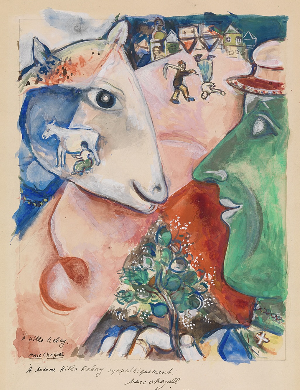 Marc Chagall (Russian, 1887 – 1985), I and the Village, ca. 1923–24, Gouache, watercolor, and graphite on paper, 15 3/8 x 11 7/8 inches (39 x 30 cm), Credit Line, Solomon R. Guggenheim Museum, New York Solomon R. Guggenheim Founding Collection, By gift, Accession 41.435, Copyright, © 2023 Artists Rights Society (ARS), New York / ADAGP, Paris, Image Source: Guggenheim
