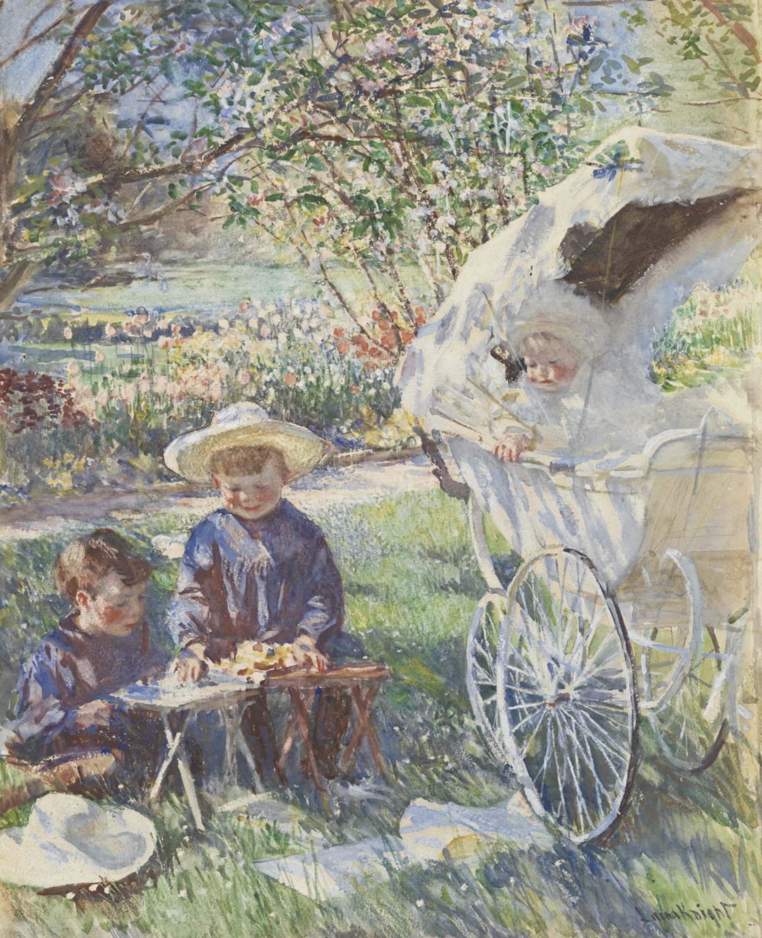 “Knight’s superb handling of watercolour is evident in this dazzling en plein air portrait of Stephen, Michael and Anthony Penton, painted in their grandfather’s New Forest garden. In contrast to the broad brushstrokes of her oil paintings, Laura’s delicate and detailed watercolours of this period demonstrate her highly refined technique.” READ FULL ESSAY: Richard Green … Continue reading Dame Laura Knight: The Penton Children