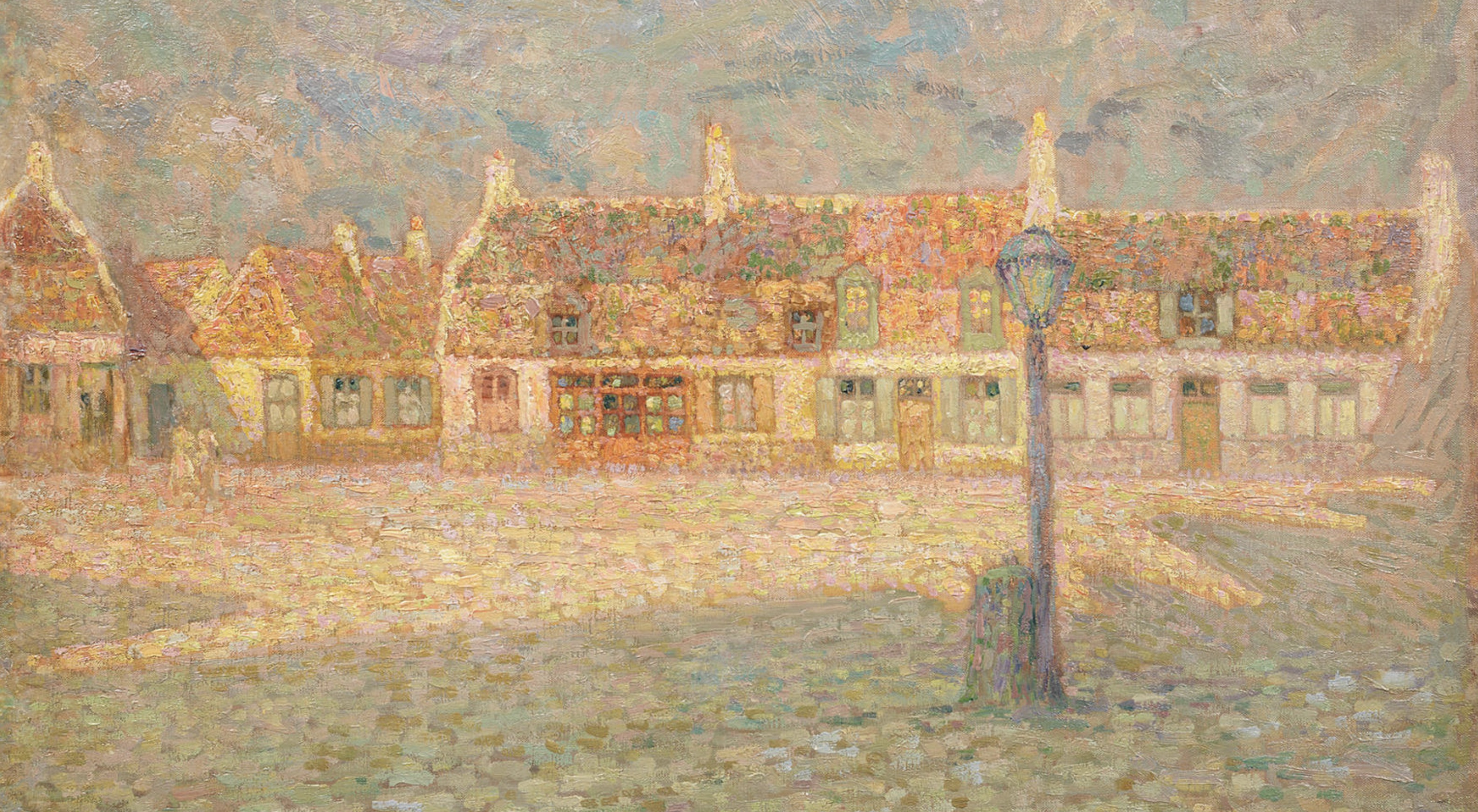 Henri Le Sidaner (French, 1862-1939), Petite place. Soleil couchant, signed ‘Le Sidaner’ (lower left), oil on canvas, 46.3 x 61.5cm (18 1/4 x 24 3/16in)., Painted in Gravelines in 1902, Image Source: Bonhams
