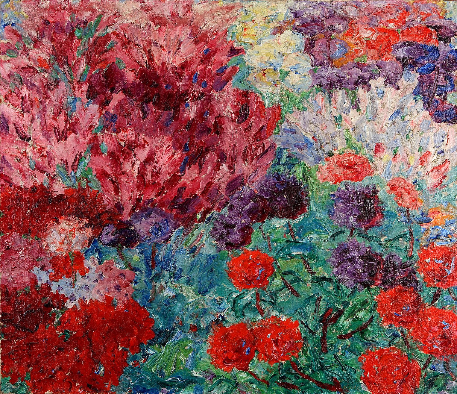 Emil Nolde (German, 1867-1956), “Flower Garden” (without figure) (Blumengarten, ohne Figur), oil painting on canvas, 1908, Image Source: wikiwand