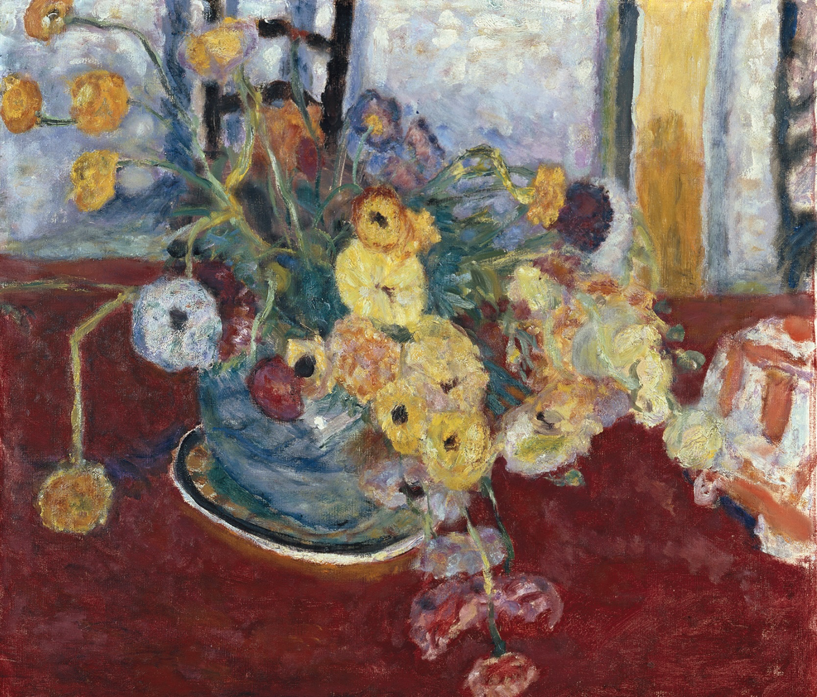 Pierre Bonnard (French, 1867- 1947), Flowers on a Red Carpet , 1928, 57 x 61 cm, Oil on canvas, Musée des Beaux-Arts, Lyon, Image Source: wikimedia